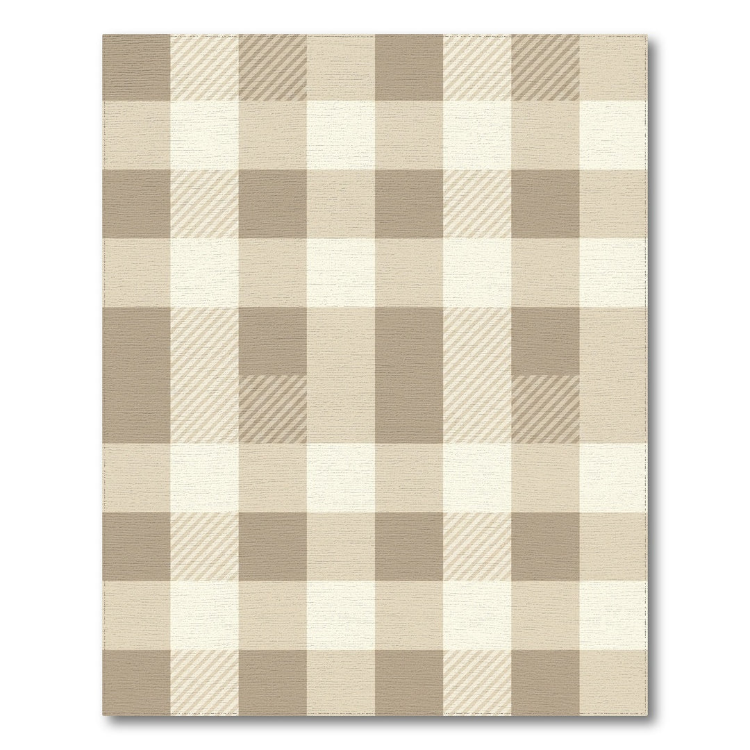 Warm Beige Checked Plaid Rug