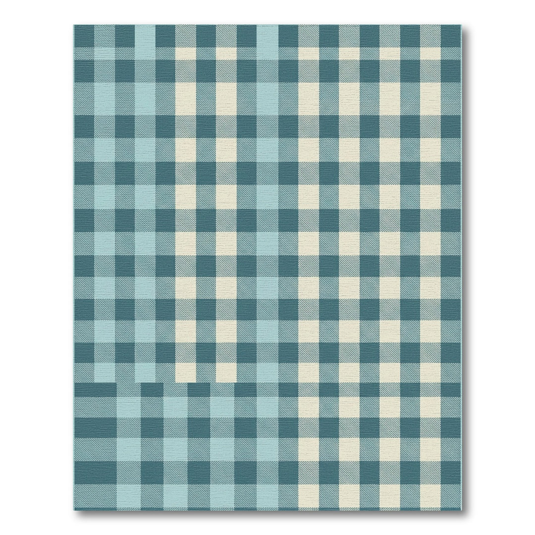 Teal Cream Checkered Comfort Rug