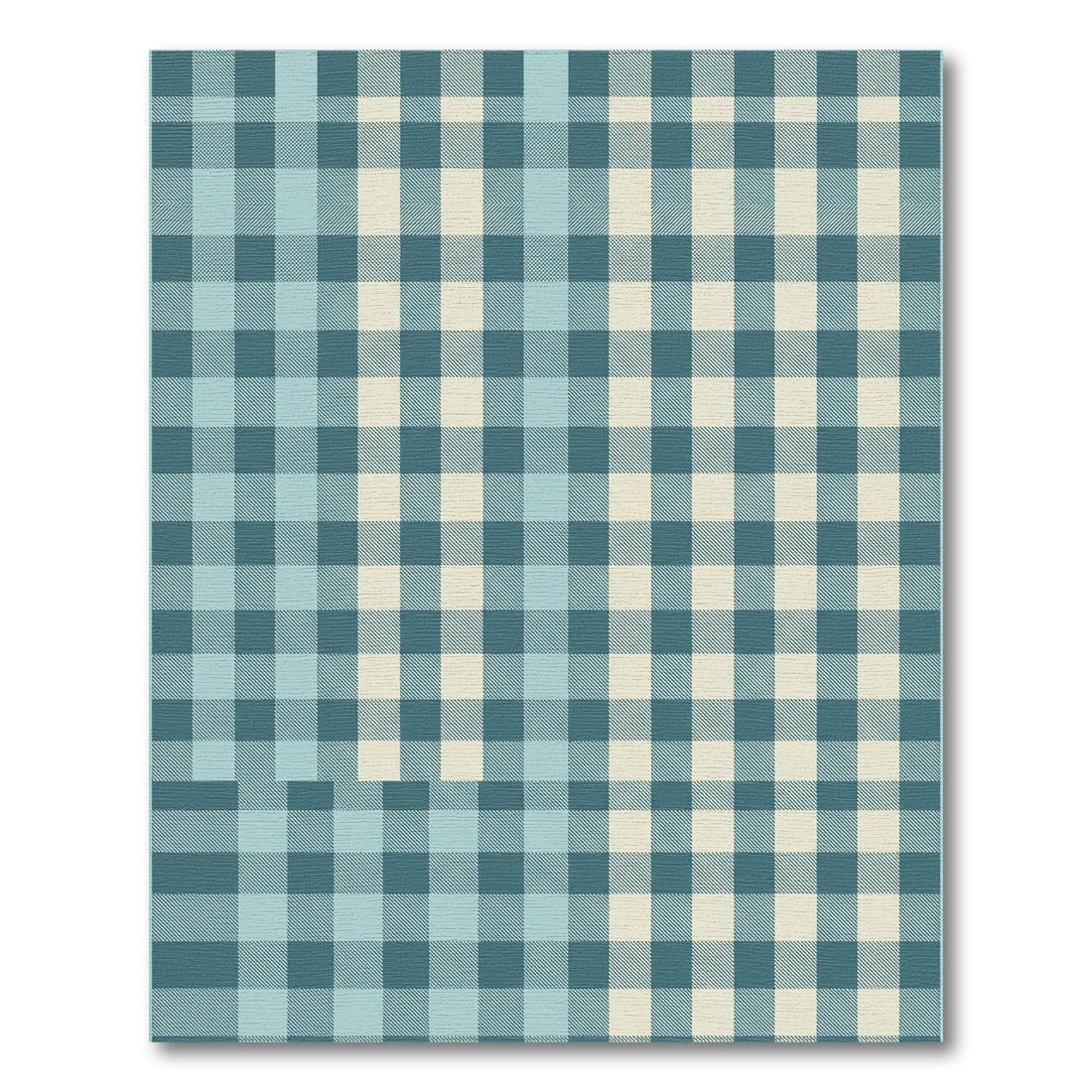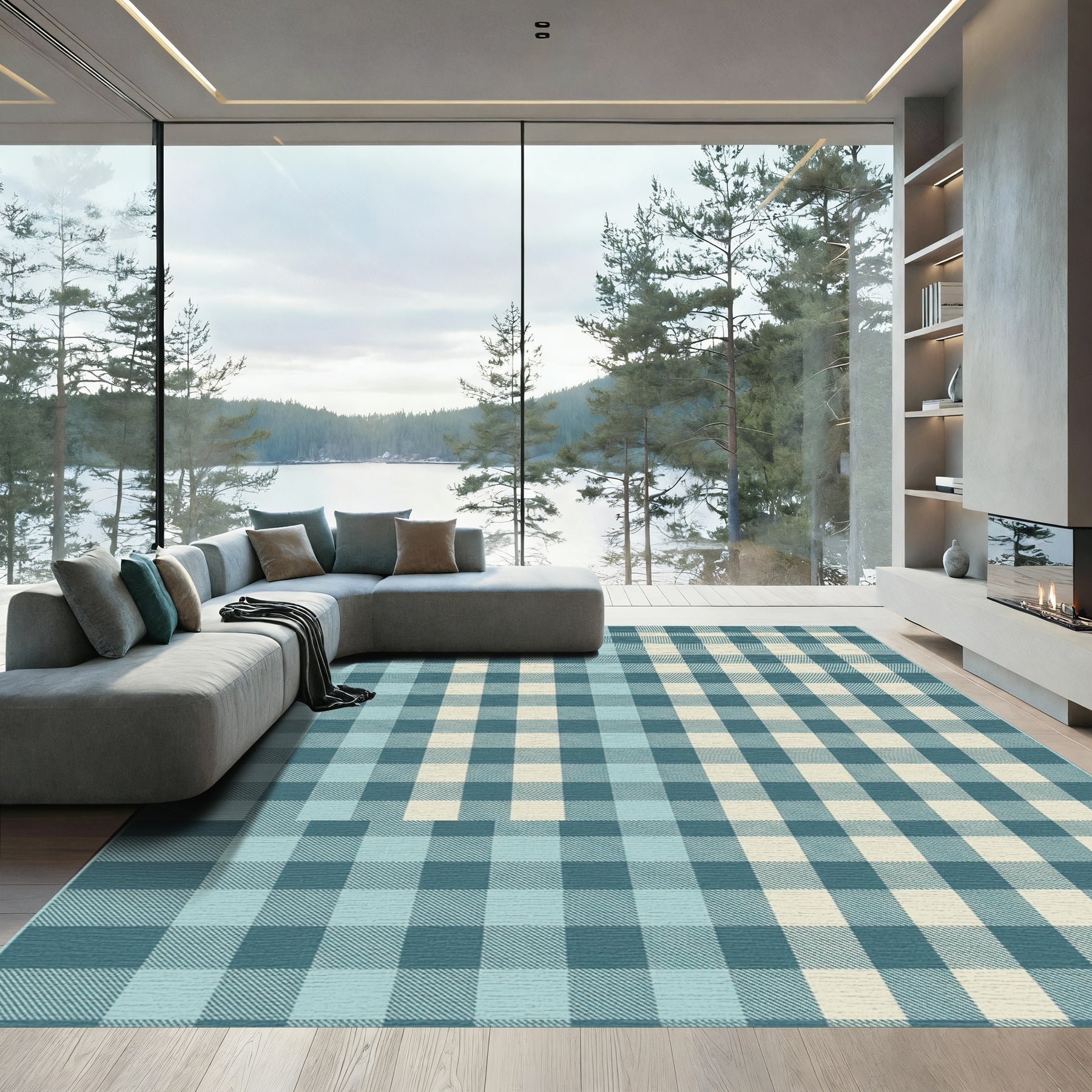 Flatwoven High Traffic Area Rug, Teal Cream Checkered Comfort Rug, Non Slip, Stain Resistant, Washable Area Rugs for Living Room, Bedroom Overview: