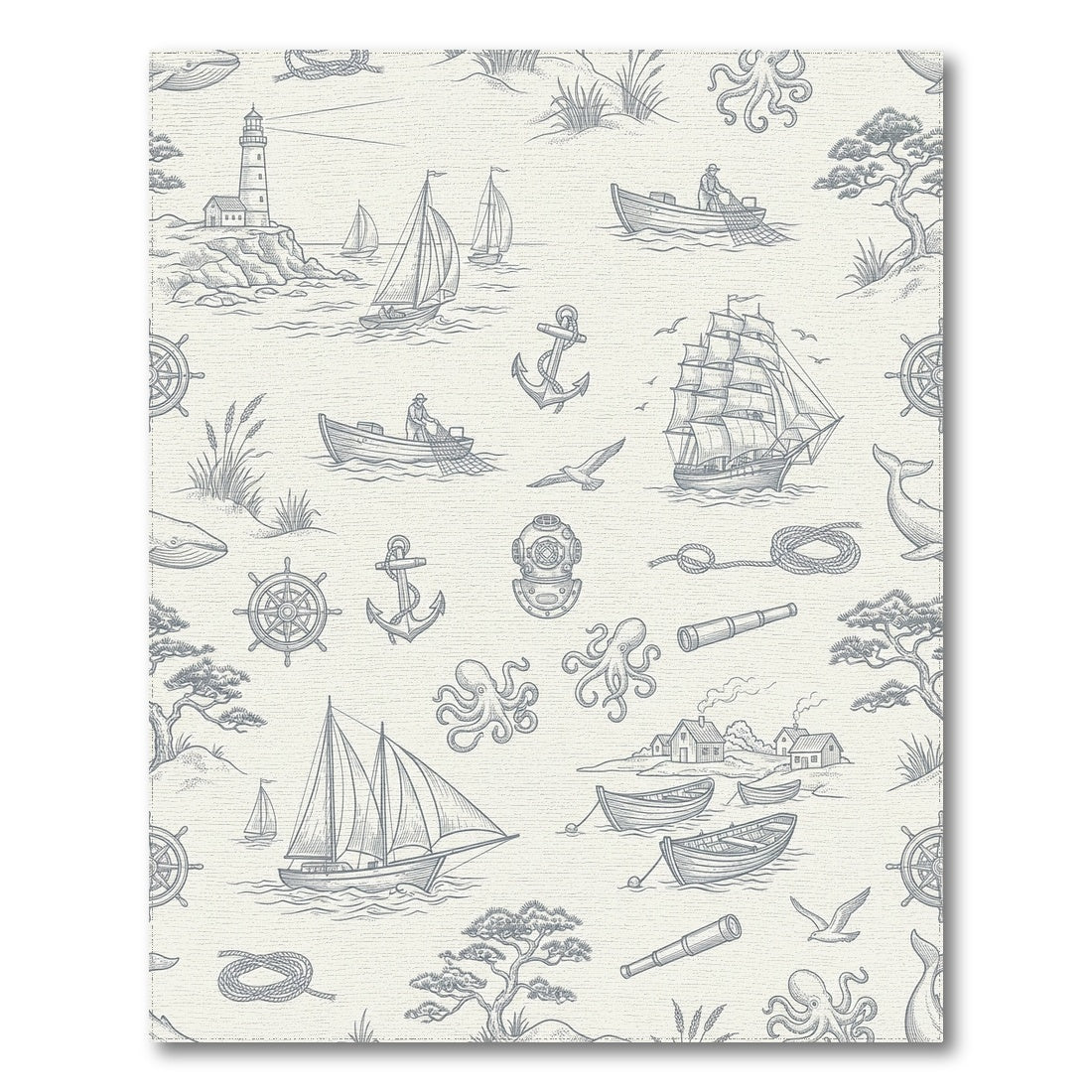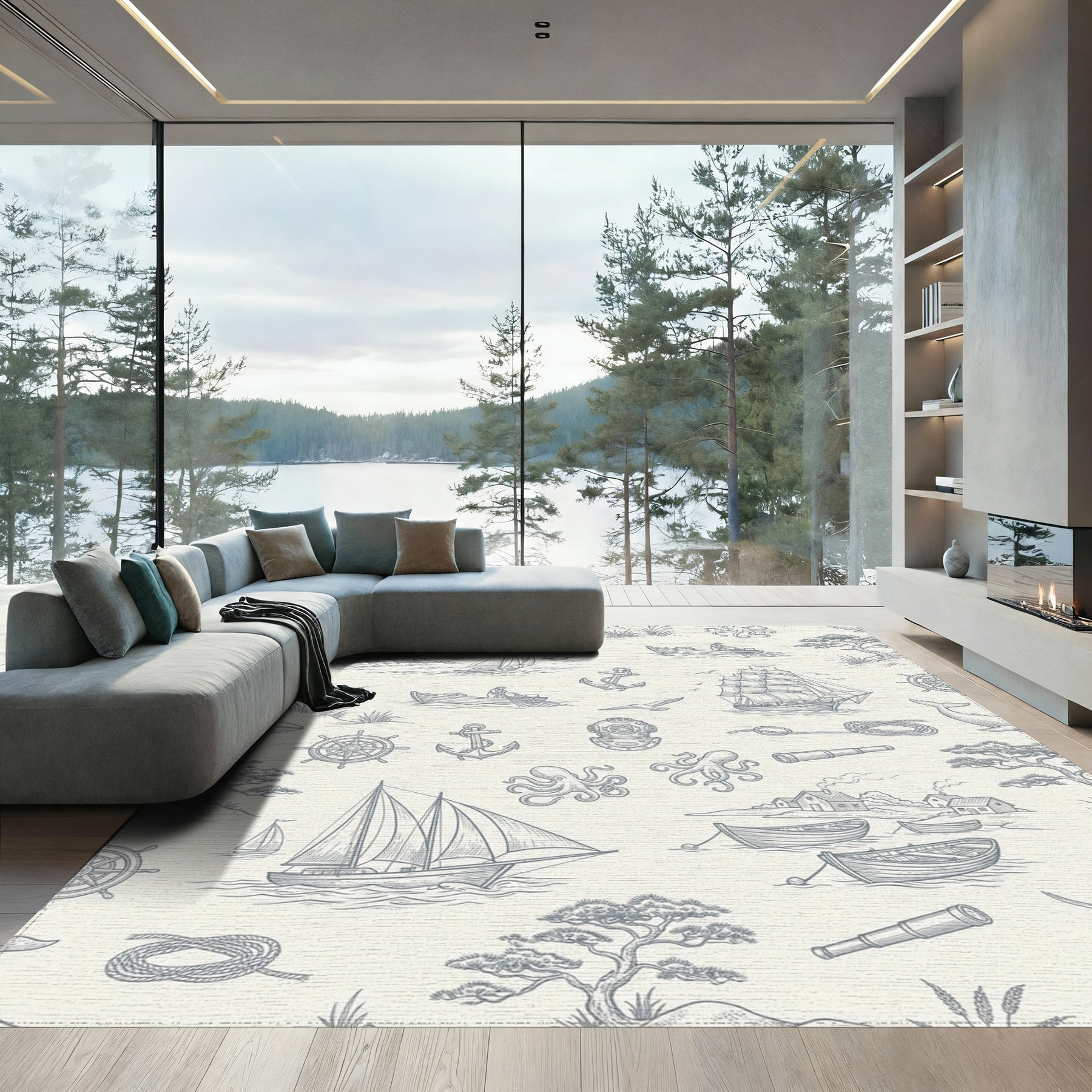 Flatwoven High Traffic Area Rug, Nautical Lighthouse Sailing Ships Octopus Rope Rug, Non Slip, Stain Resistant, Washable Area Rugs for Living Room, Bedroom Overview: