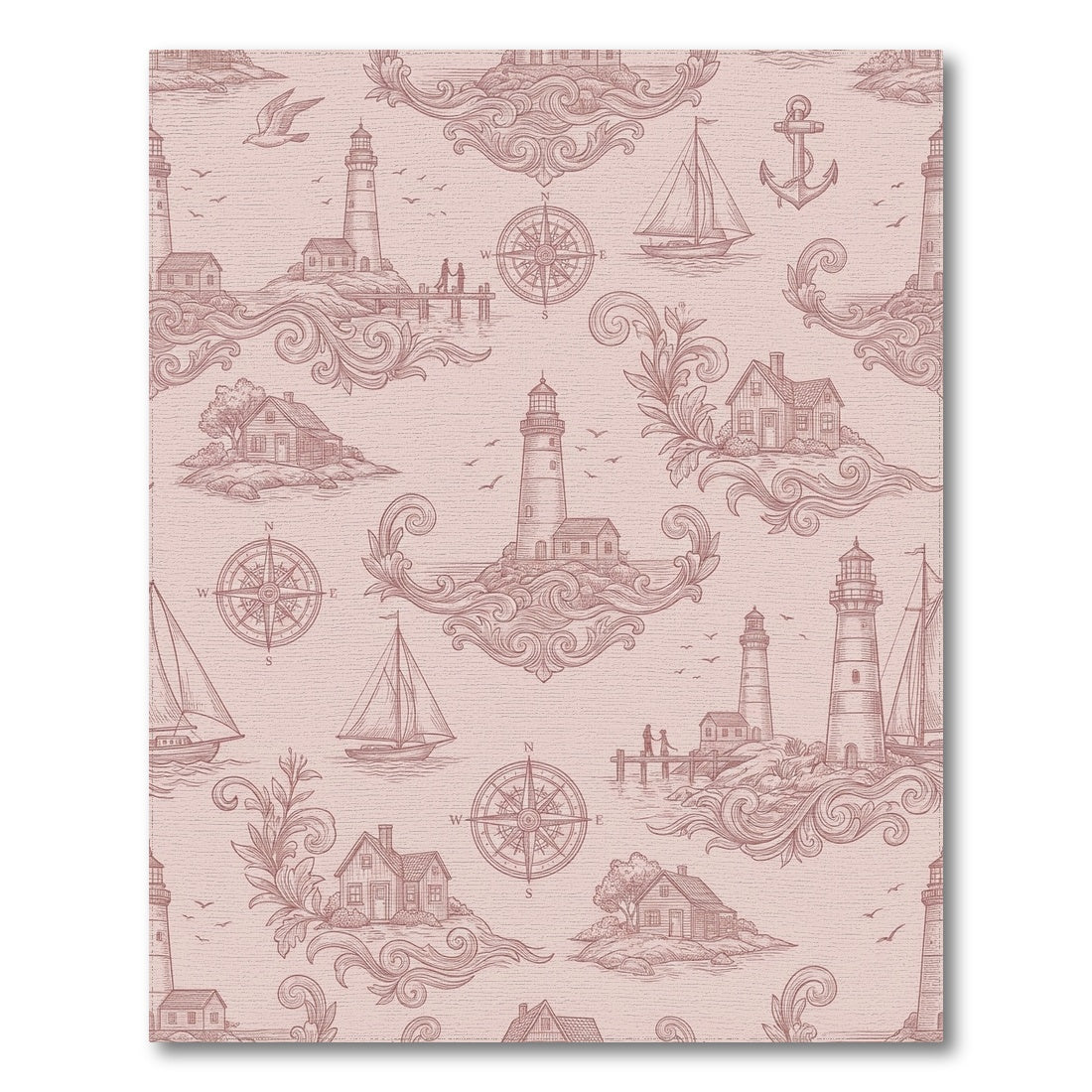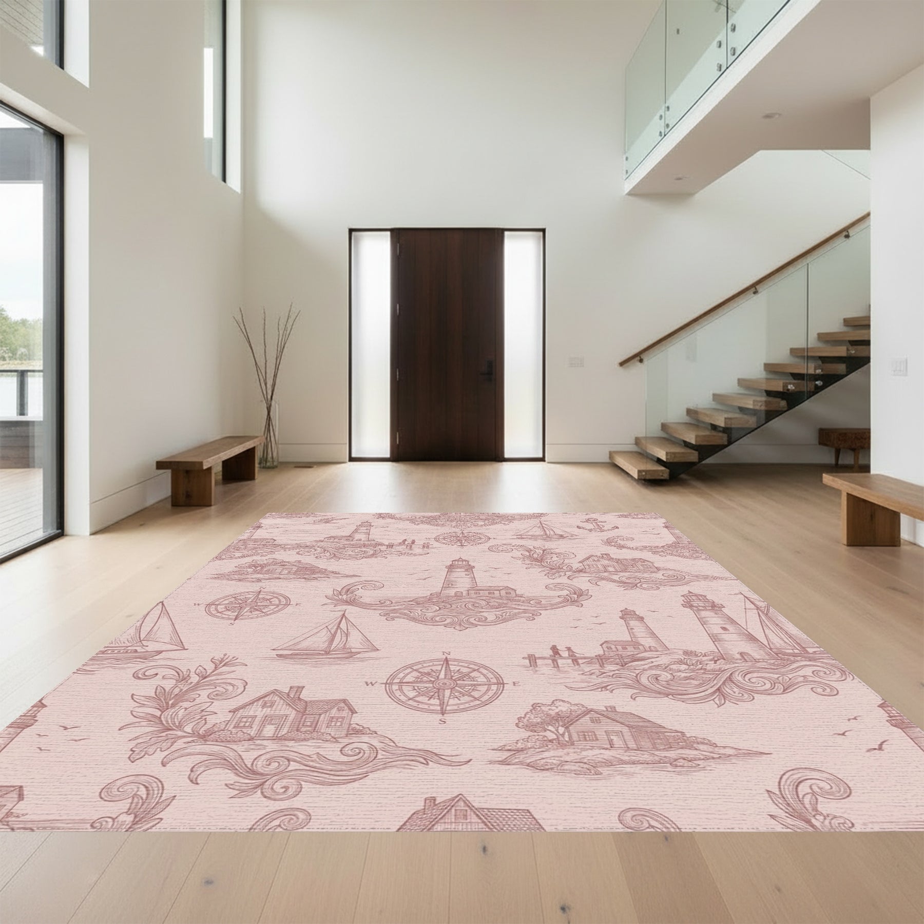 Flatwoven High Traffic Area Rug, Nautical Theme Lighthouse Sailboat Compass Scene Rug, Non Slip, Stain Resistant, Washable Area Rugs for Living Room, Bedroom Overview: