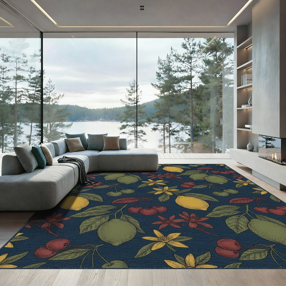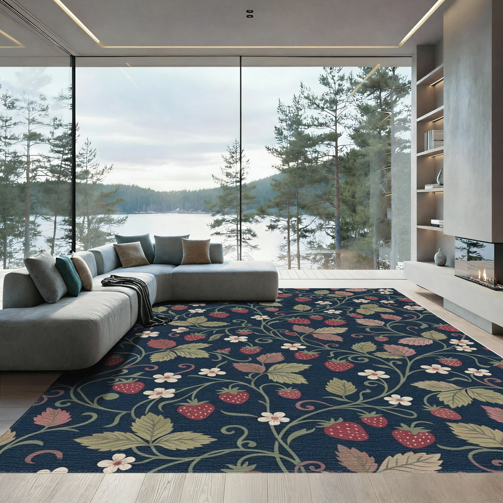 Midnight Blue Festive Pinecone Snowflakes Rug