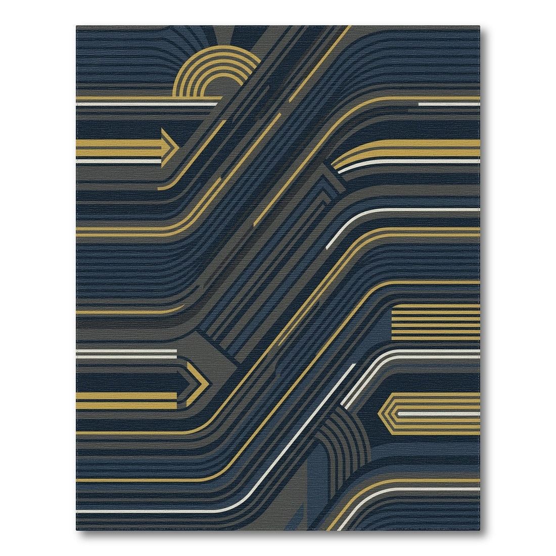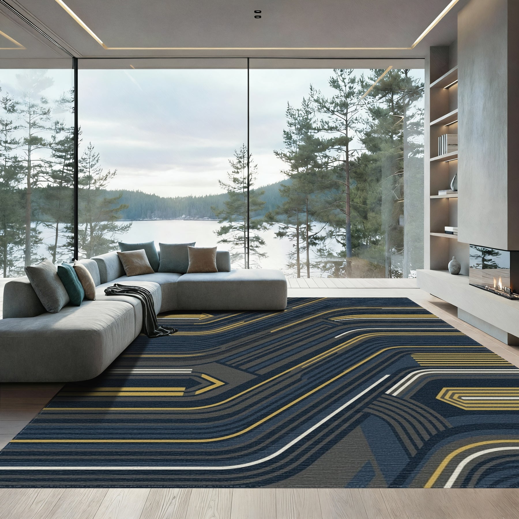 Flatwoven High Traffic Area Rug, Abstract Geometric Blue Yellow Lines Rug, Non Slip, Stain Resistant, Washable Area Rugs for Living Room, Bedroom Overview:
