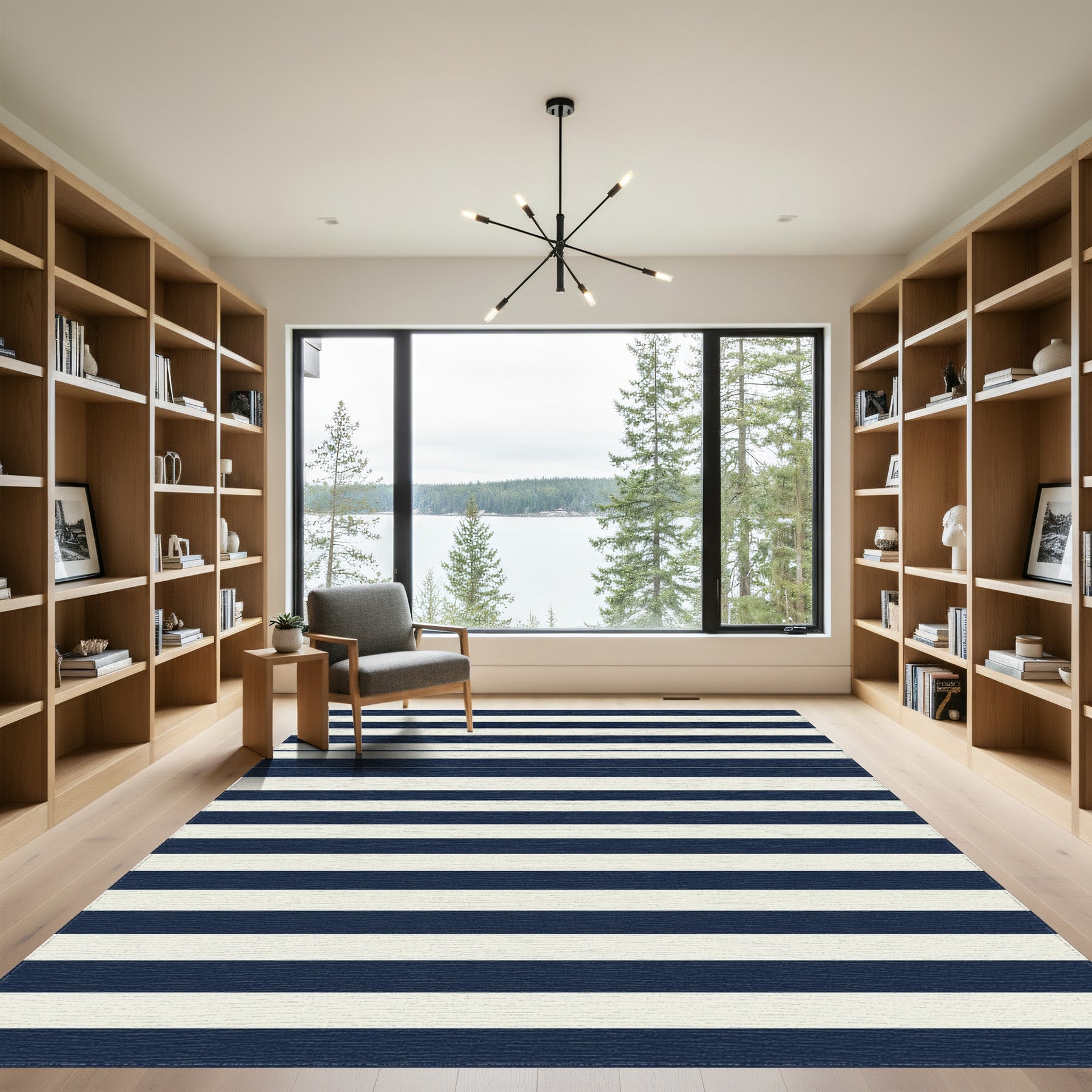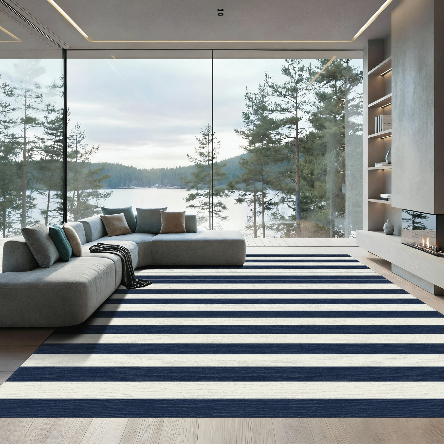 Rooted in the enduring legacy of maritime tradition, this design pulls inspiration from the iconic Breton stripe—a pattern that has sailed from French naval uniforms to the runways of high fashion. It captures the spirit of mid-century coastal optimism, where clear lines mimic the rhythmic pulse of tides hitting the shore. The deep, steady navy anchors the space like a harbor at twilight, while the creamy intervals provide a breath of open air, turning any floor into a clean, rhythmic horizon. Step onto this rug, and the room shifts, trading clutter for clarity and chaotic energy for tranquil structure. It is designed for those who find beauty in repetition and stillness, for the homeowner who curates a life of deliberate, unfussy elegance. Don't just fill your space—anchor it. Walk upon a classic narrative. Live in crisp, quiet confidence.