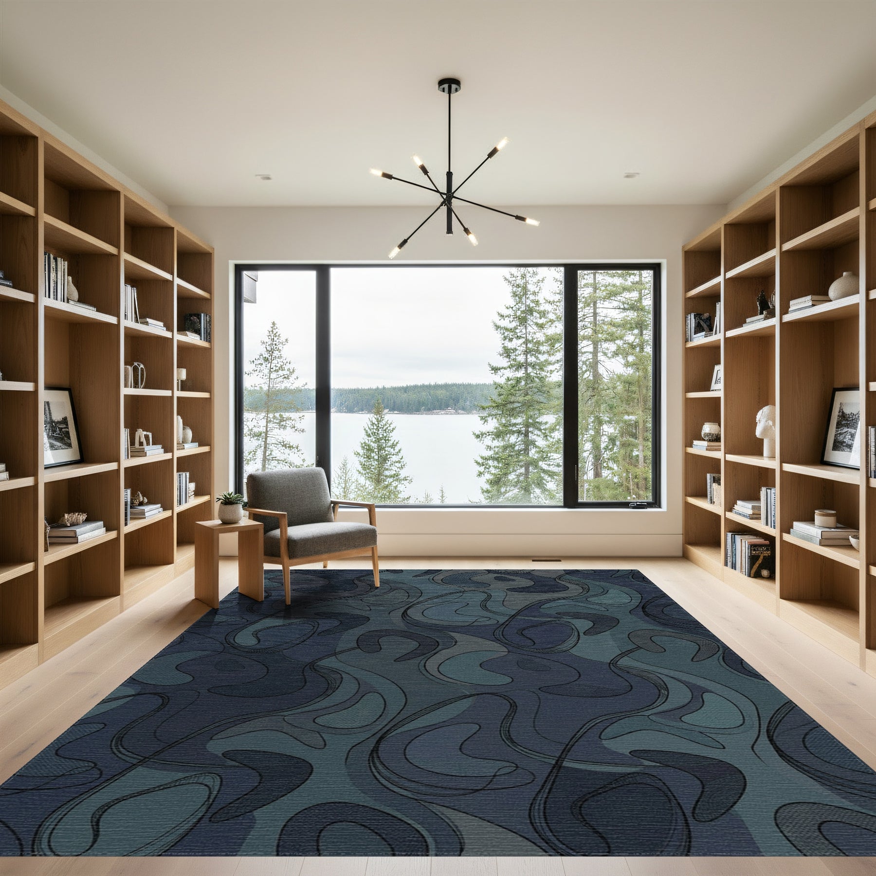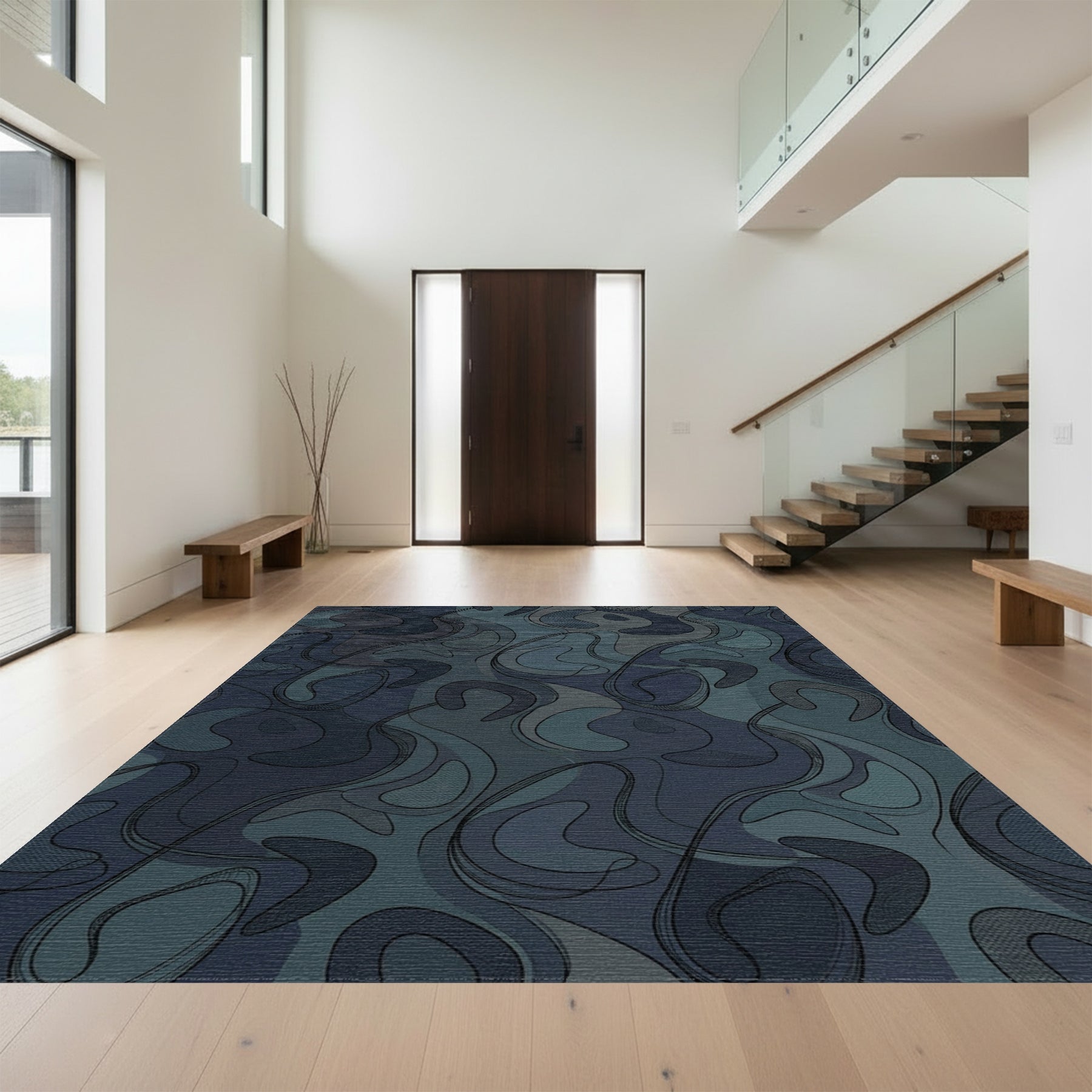Flatwoven High Traffic Area Rug, Dark Blue Organic Contour Weave Rug, Non Slip, Stain Resistant, Washable Area Rugs for Living Room, Bedroom Overview: