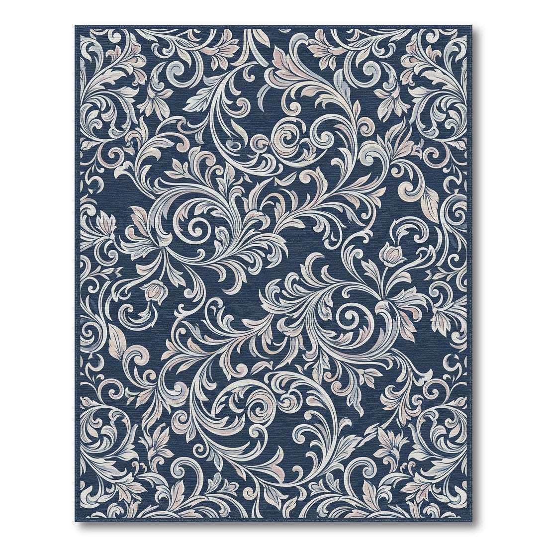 Flatwoven High Traffic Area Rug, Dark Blue Scrollwork Floral Tapestry Rug, Non Slip, Stain Resistant, Washable Area Rugs for Living Room, Bedroom Overview: