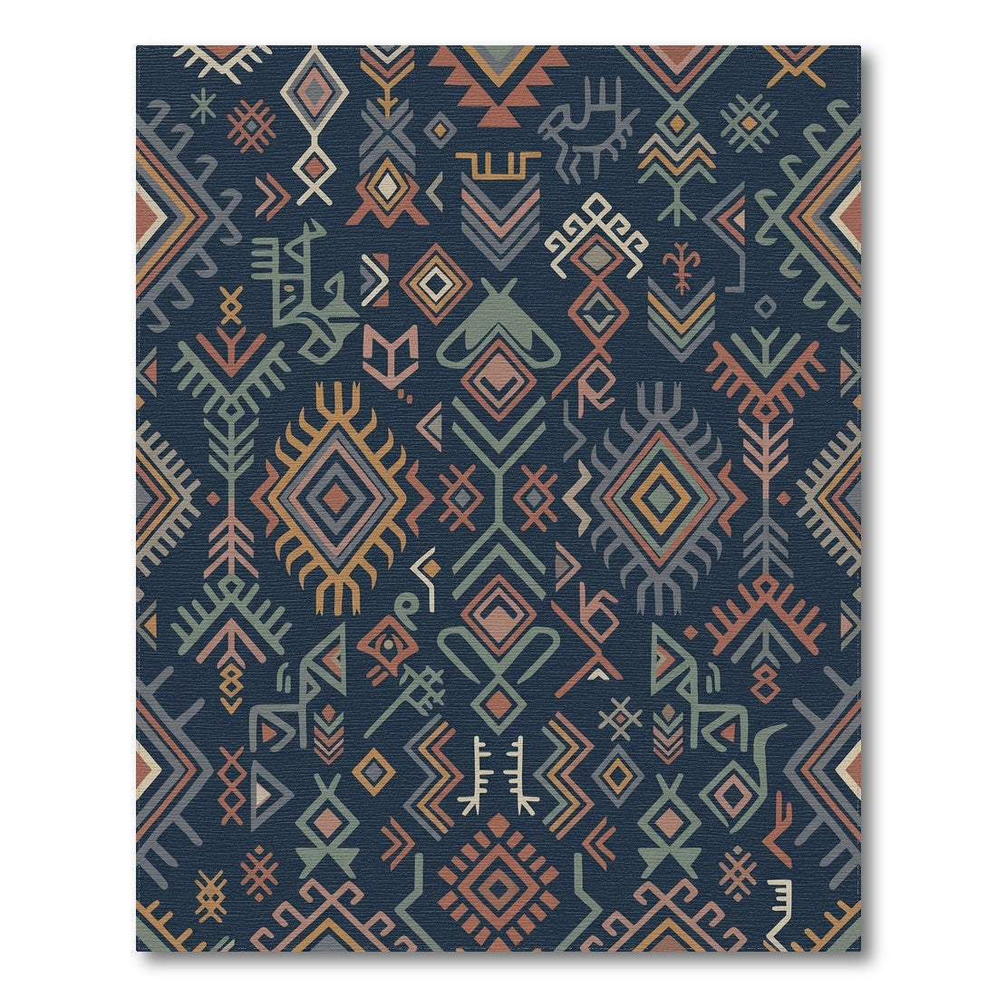 Flatwoven High Traffic Area Rug, Deep Blue Tribal Geometric Medallion Rug, Non Slip, Stain Resistant, Washable Area Rugs for Living Room, Bedroom Overview:
