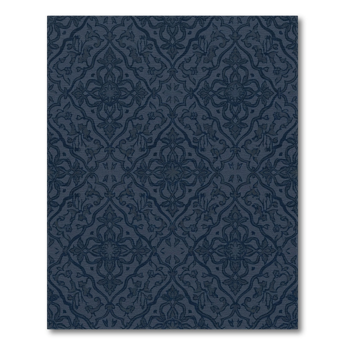 Drawing inspiration from the formal symmetry of 17th-century European damasks, this design offers a modern meditation on classic floral ornamentation. The charcoal and navy lattice work weaves together like iron-wrought vines, evoking the timeless precision of traditional woodblock prints against a backdrop of nocturnal depth. Each floral motif blooms with quiet restraint, a visual ode to the interplay between structural rigors and botanical grace. Step onto this scene, and the room undergoes a subtle metamorphosis; the hard edges of modern living soften, the light deepens into a velvet hue, and the atmosphere becomes one of hallowed stillness. This is a canvas for the soul who treasures the mystery of the midnight hour and the quiet authority of legacy design. It is not merely a floor covering—it is a foundation for intimacy. Give your home a heartbeat. Live in reverence.