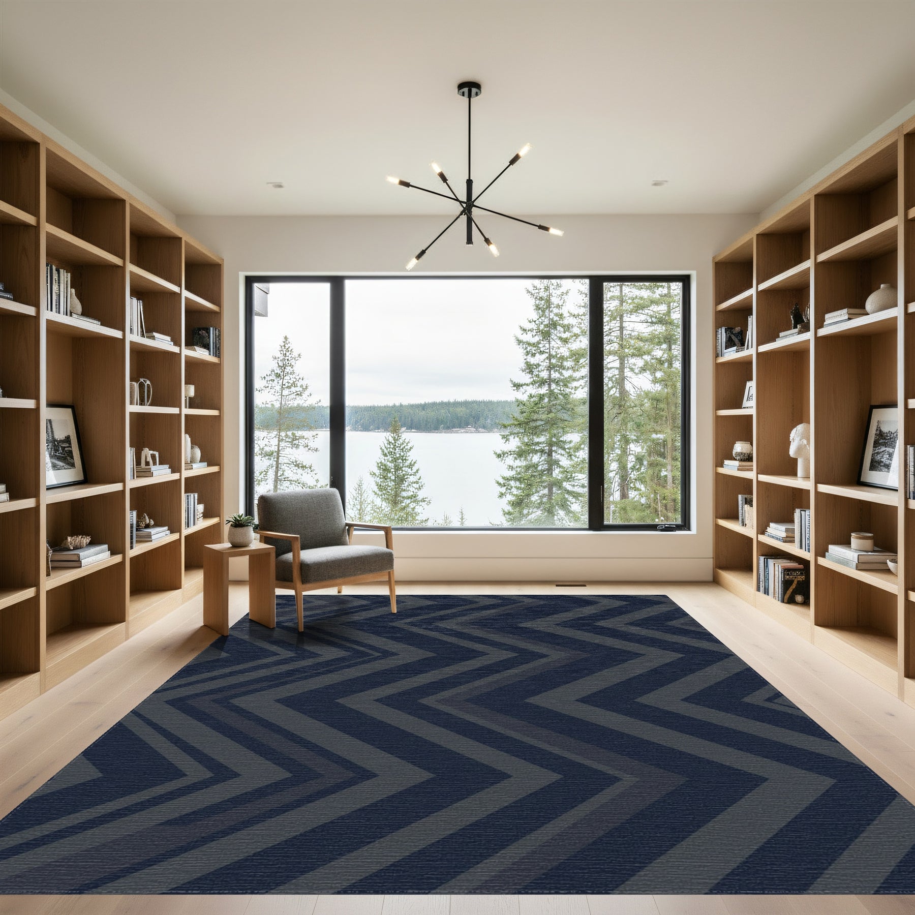 Flatwoven High Traffic Area Rug, Deep Navy Geometric Chevron Rug, Non Slip, Stain Resistant, Washable Area Rugs for Living Room, Bedroom Overview: