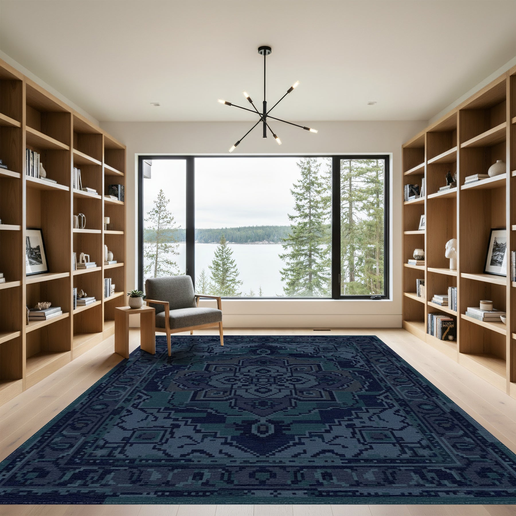 Flatwoven High Traffic Area Rug, Deep Teal Medieval Medallion Rug, Non Slip, Stain Resistant, Washable Area Rugs for Living Room, Bedroom Overview: