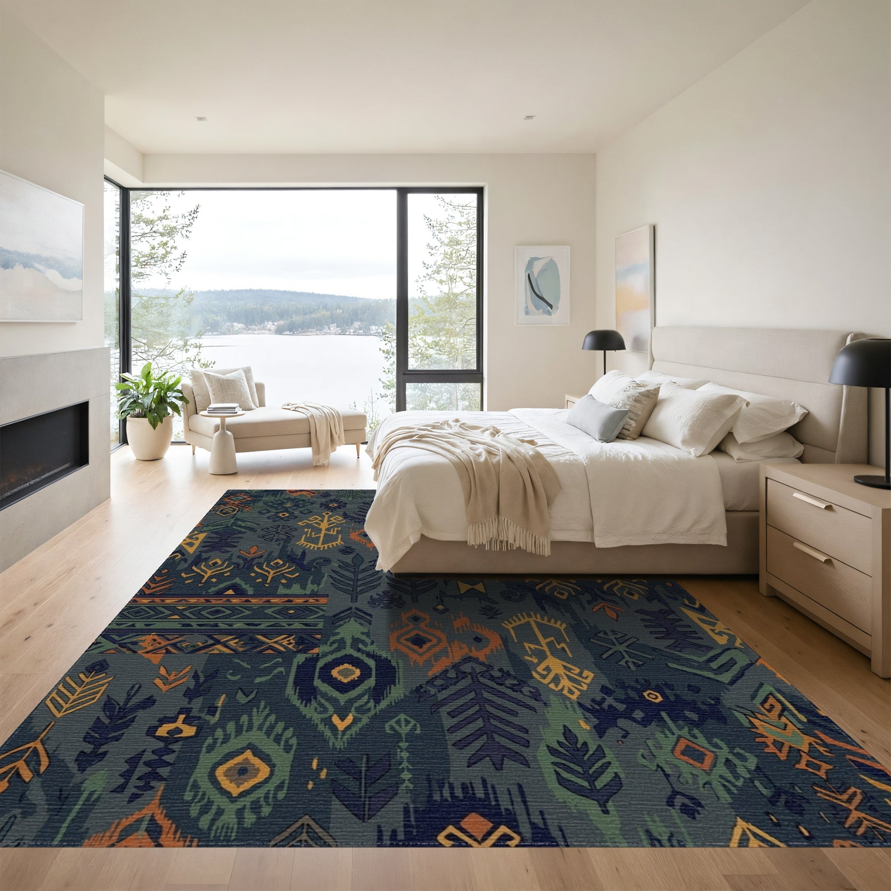 Rooted in the ancient visual lexicons of Central Asian ikat traditions and the rhythmic geometry of Southwestern weaving, this design acts as a modern bridge between heritage artistry and current interior sensibilities. It captures the essence of a storied, well-traveled life, where motifs bloom like desert flora against a deep, twilight-navy canvas. The pattern mimics the faded beauty of antique textiles, with ikat-style bleeds that suggest a history whispered through generations. When you lay this piece down, the room undergoes a subtle metamorphosis; the floor becomes an anchored, grounding landscape that invites pause and quiet reflection. It is intended for the heart-led homebuilder who treasures slow aesthetics and the weight of tradition. This is not merely a floor covering—it is a declaration of heritage and home. Walk upon these stories, live in the warmth of its craft, and let your space slow to the pace of a steady heart.