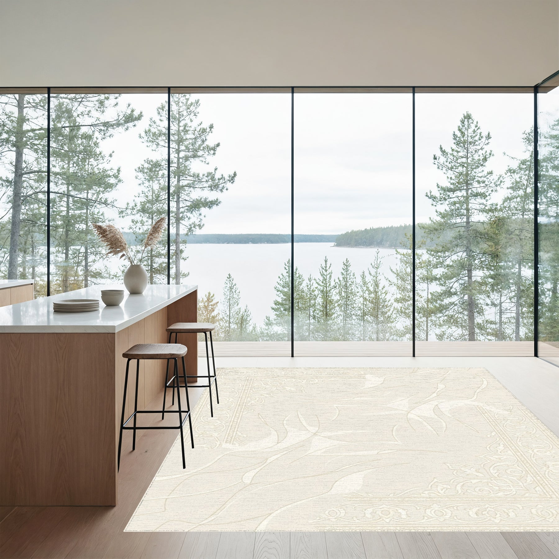 Flatwoven High Traffic Area Rug, Cream Floral Arabesque Scroll Rug, Non Slip, Stain Resistant, Washable Area Rugs for Living Room, Bedroom Overview: