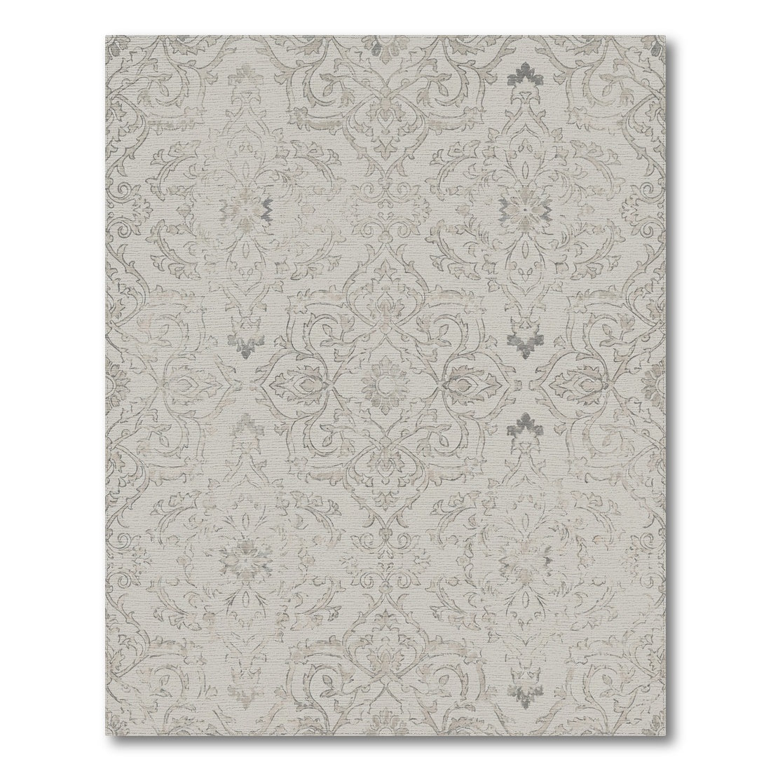 Flatwoven High Traffic Area Rug, Cream Gray Vintage Damask Scroll Rug, Non Slip, Stain Resistant, Washable Area Rugs for Living Room, Bedroom Overview: