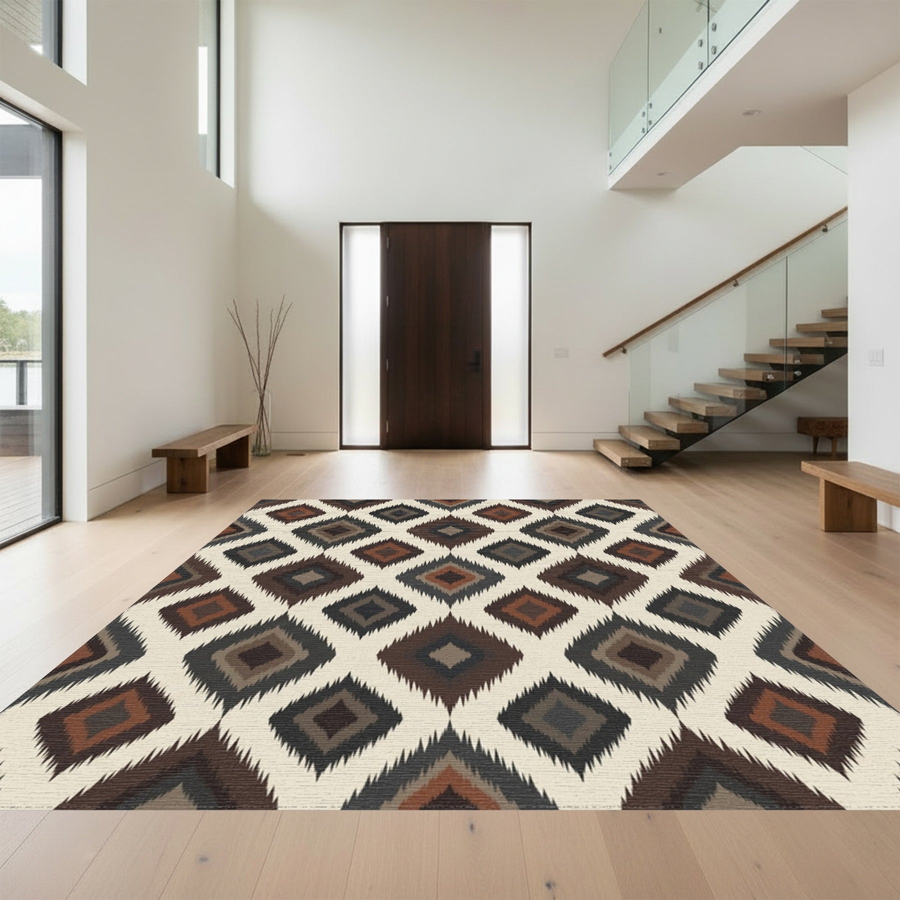Earthy Diamond Ikat Applique Rug