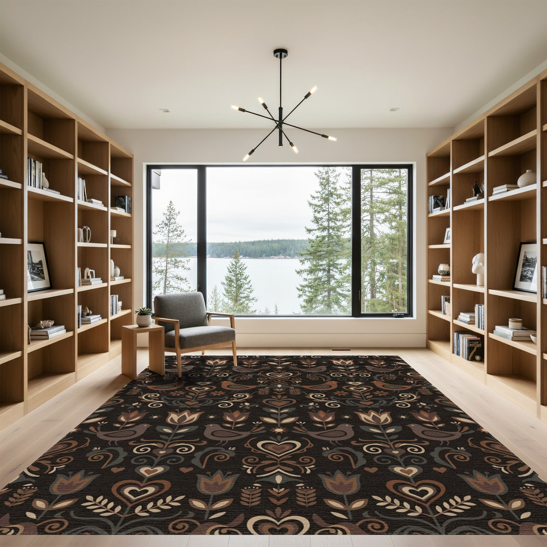 Folk Art Birds Flowers Hearts Earth Tones Rug