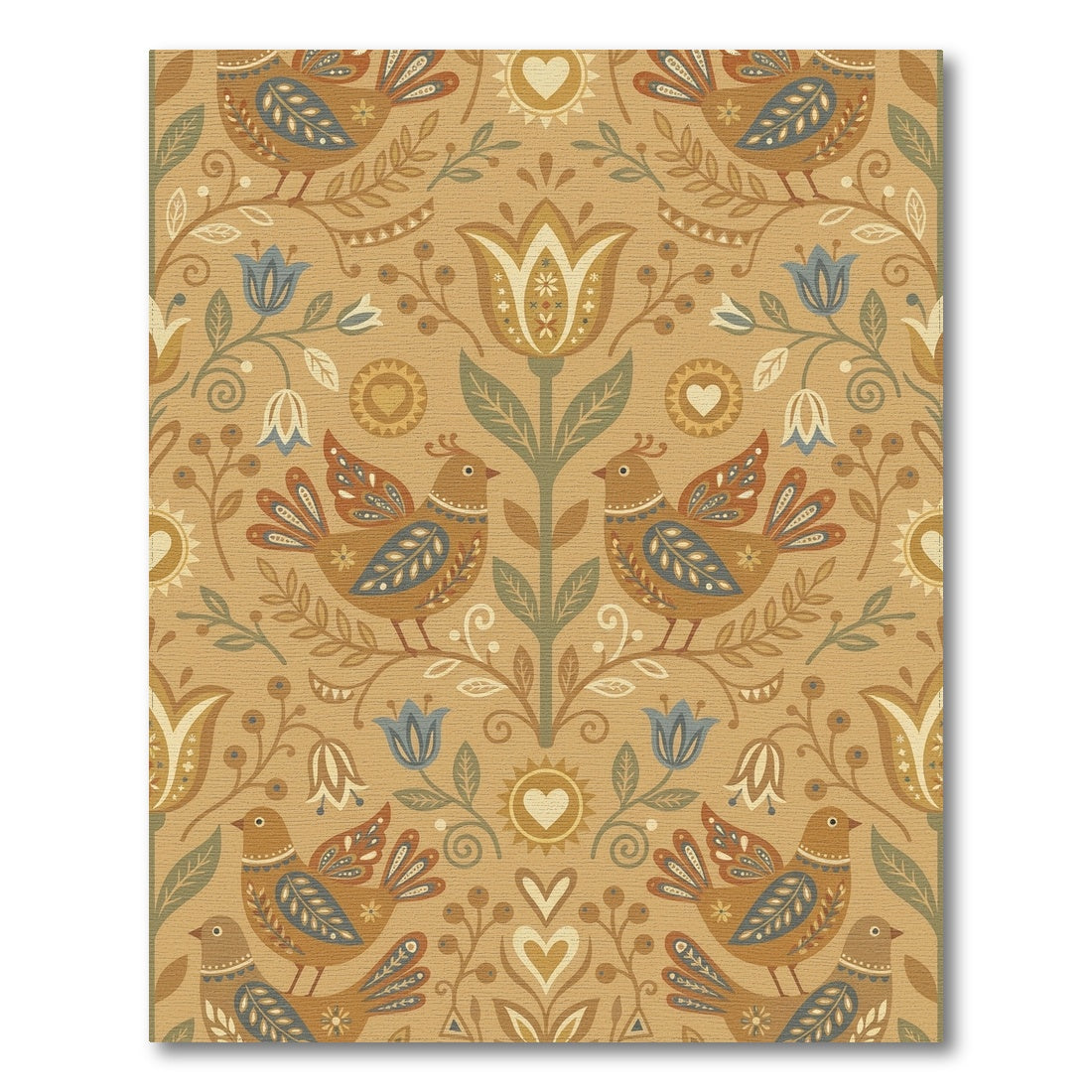 Flatwoven High Traffic Area Rug, Folk Art Inspired Birds Floral Ochre Rug, Non Slip, Stain Resistant, Washable Area Rugs for Living Room, Bedroom Overview: