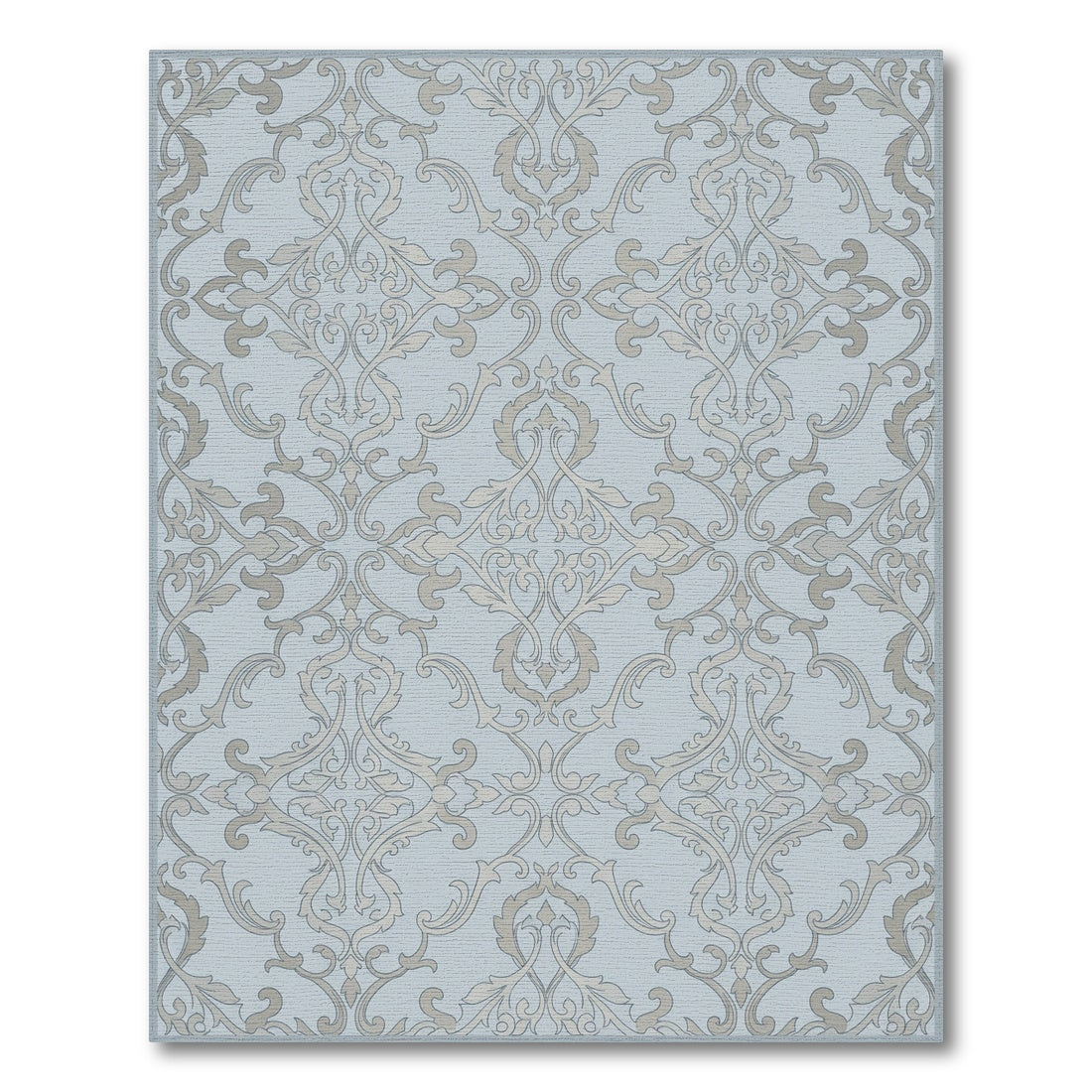 Flatwoven High Traffic Area Rug, Pale Blue Cream Damask Scroll Rug, Non Slip, Stain Resistant, Washable Area Rugs for Living Room, Bedroom Overview: