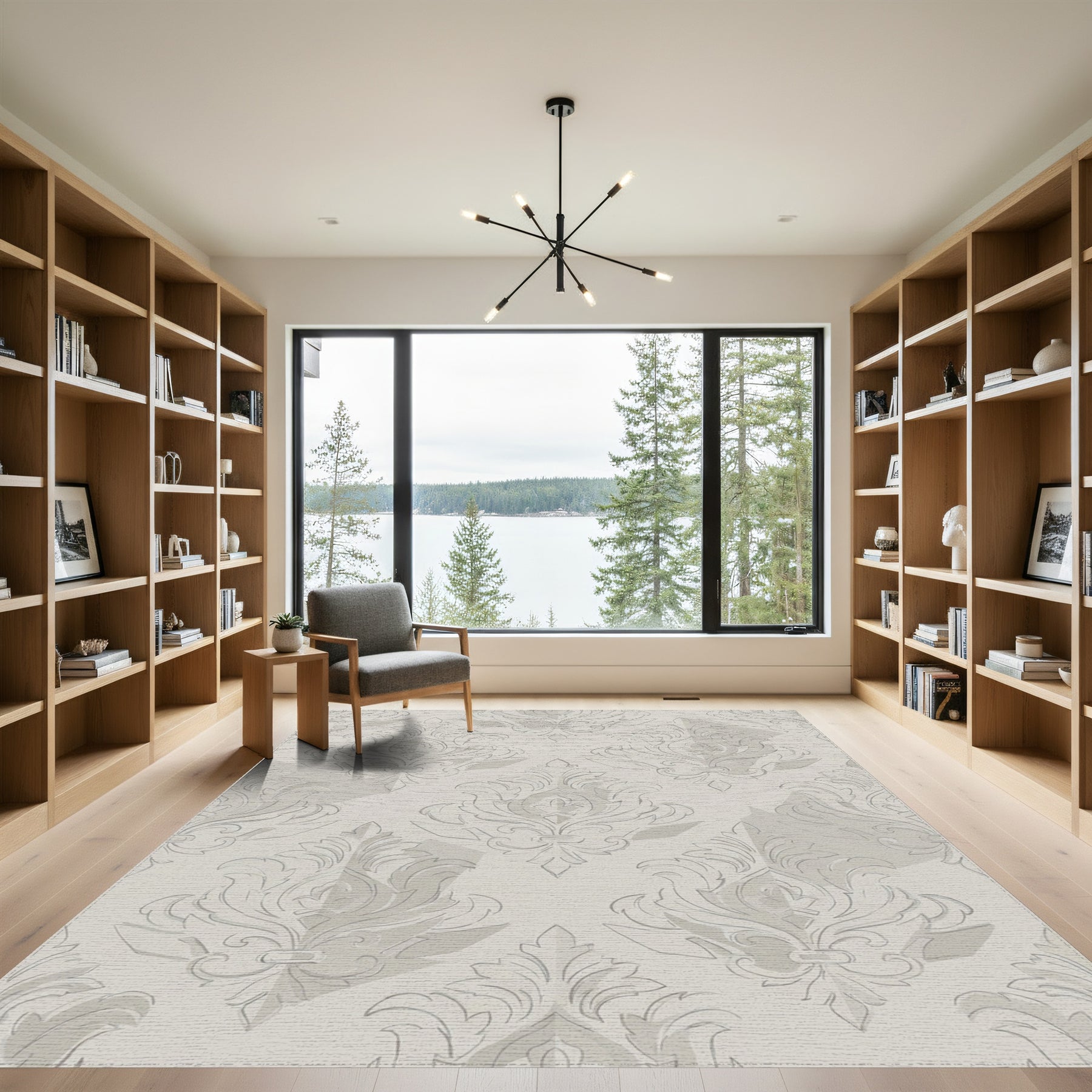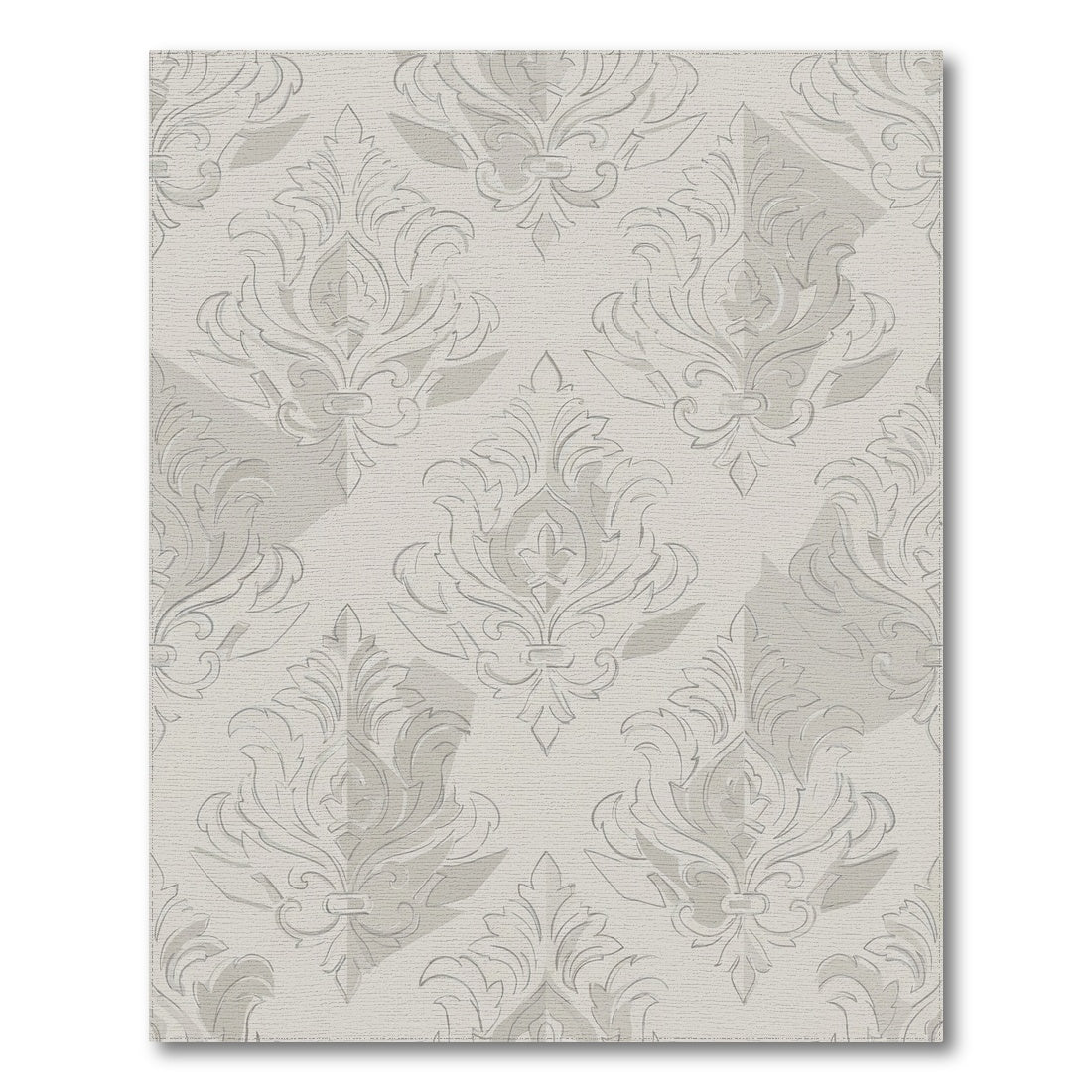 Flatwoven High Traffic Area Rug, Pale Gray Raised Damask Crest Rug, Non Slip, Stain Resistant, Washable Area Rugs for Living Room, Bedroom Overview: