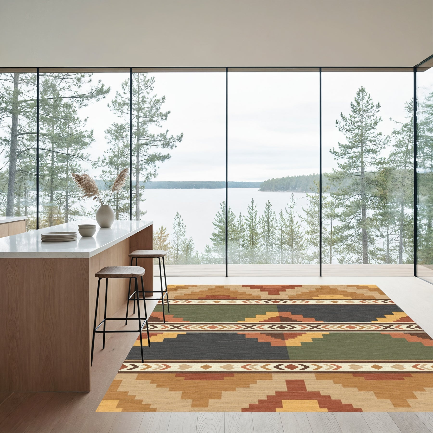 Flatwoven High Traffic Area Rug, Terracotta Earth Tone Geometric Steps Rug, Non Slip, Stain Resistant, Washable Area Rugs for Living Room, Bedroom Overview: