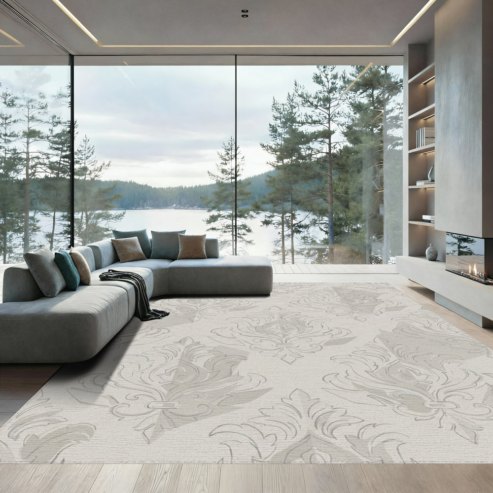 Classic Damask Floral Beige Ivory Rug