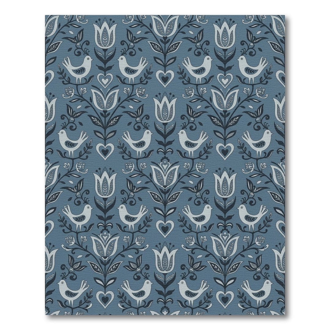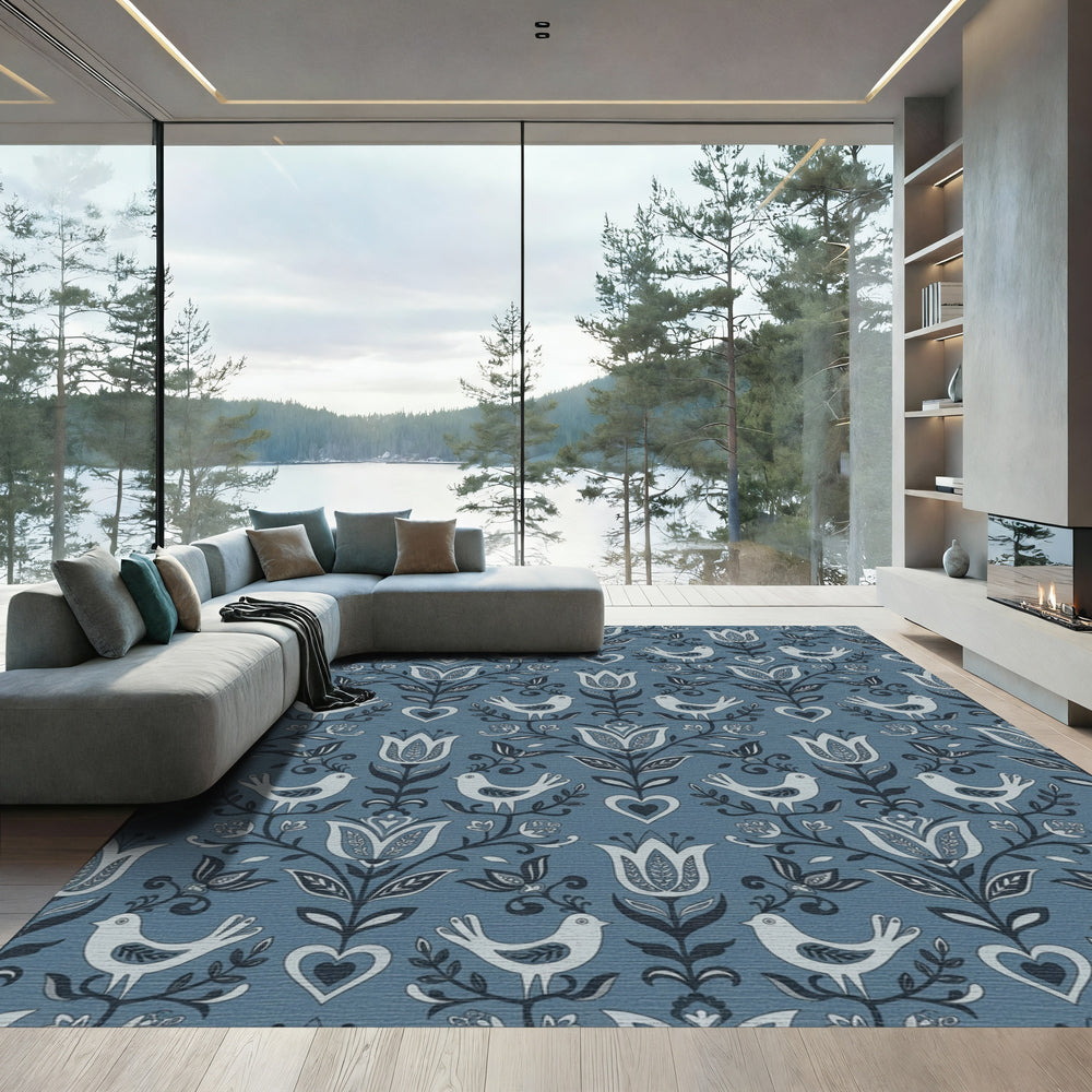 Folk Art Blue Bird Floral Heart Rug