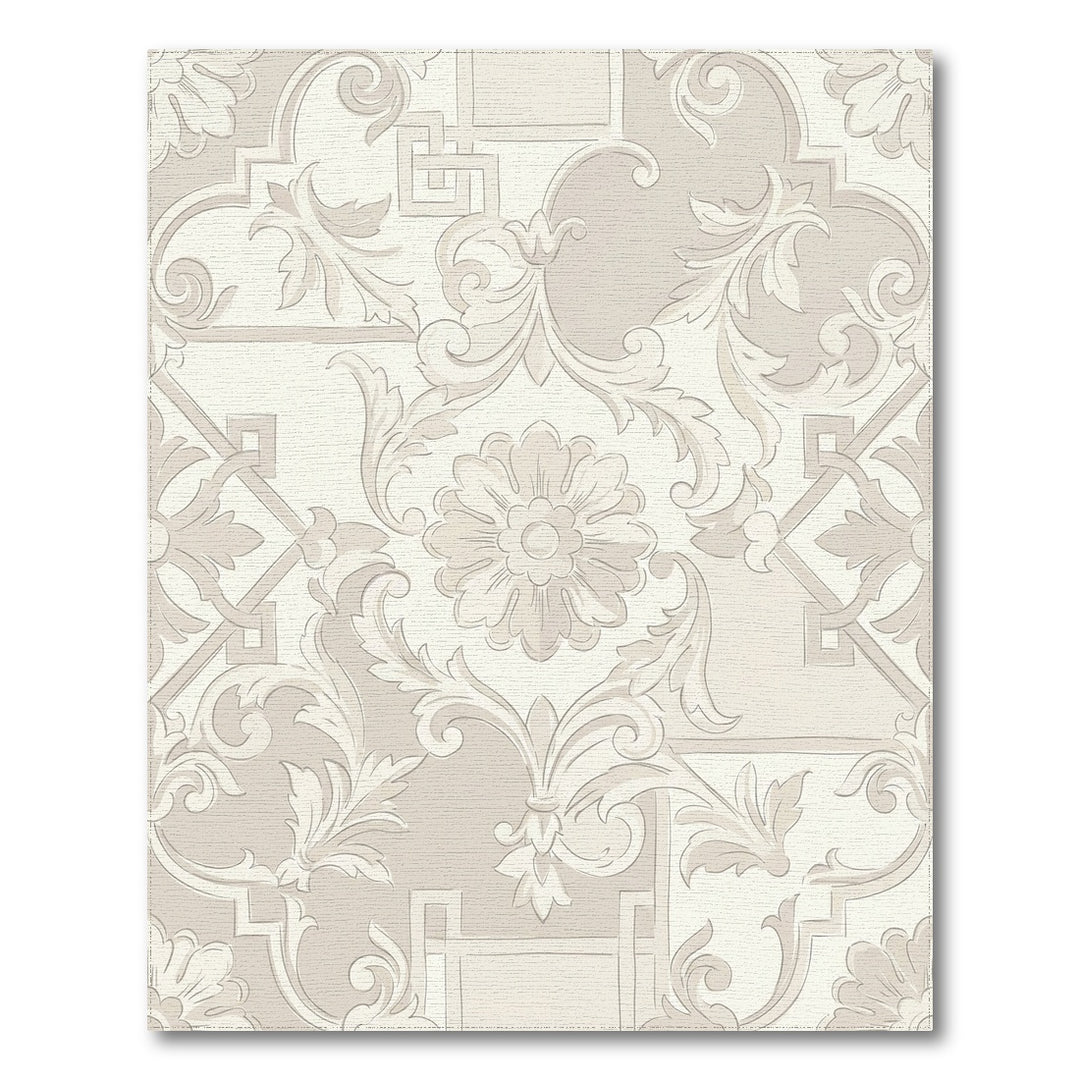 Elegant Beige Floral Scroll Medallion Rug