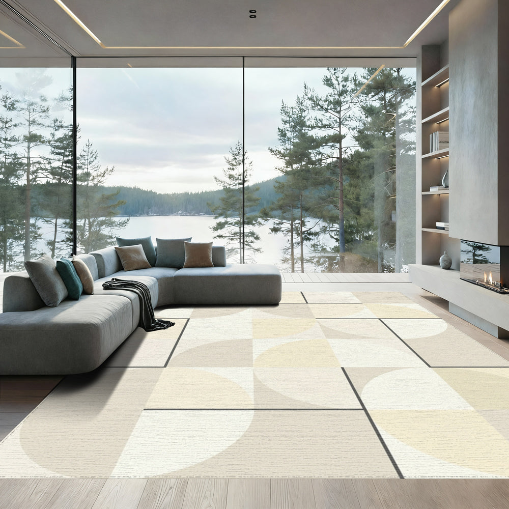 Modern Geometric Circular Squares Rug