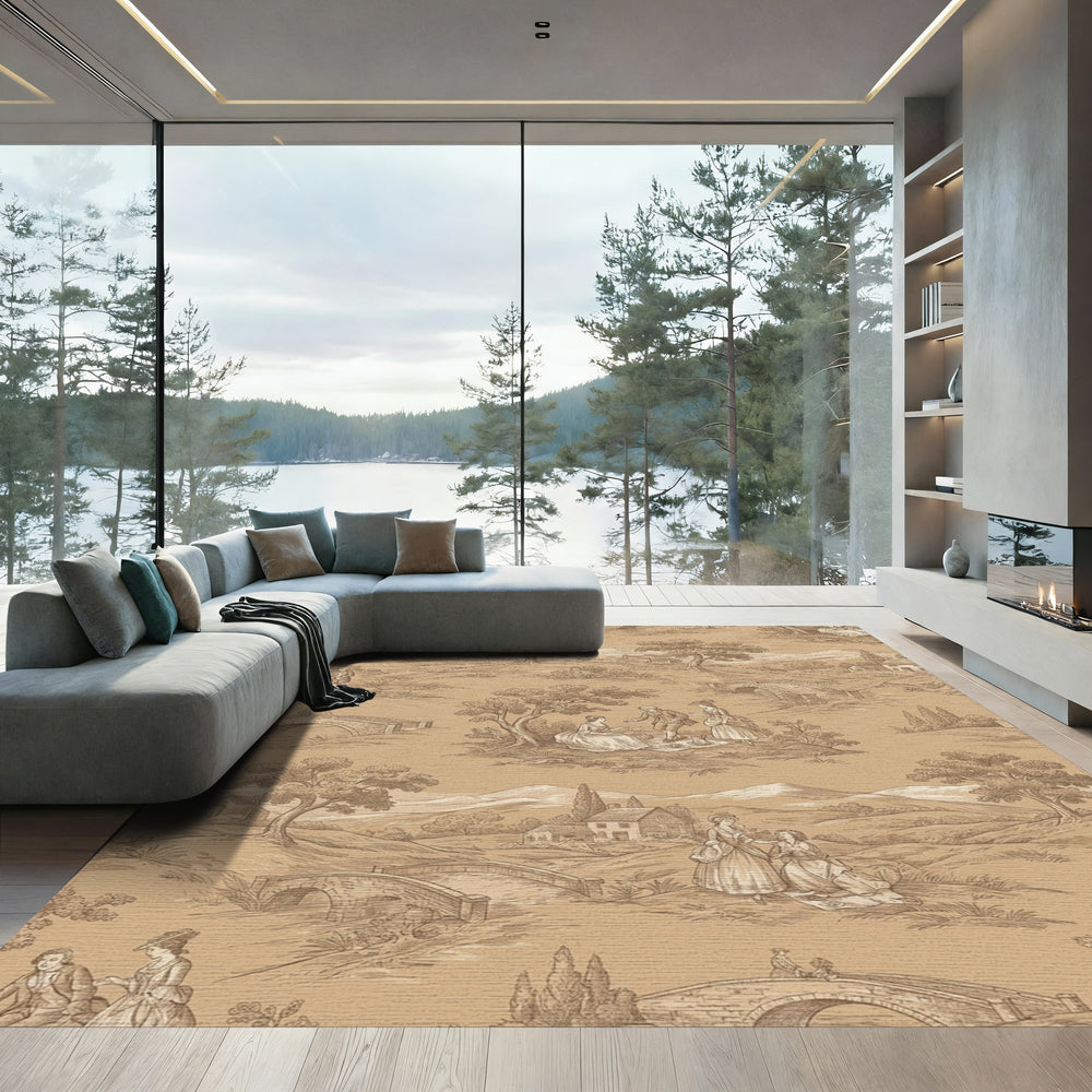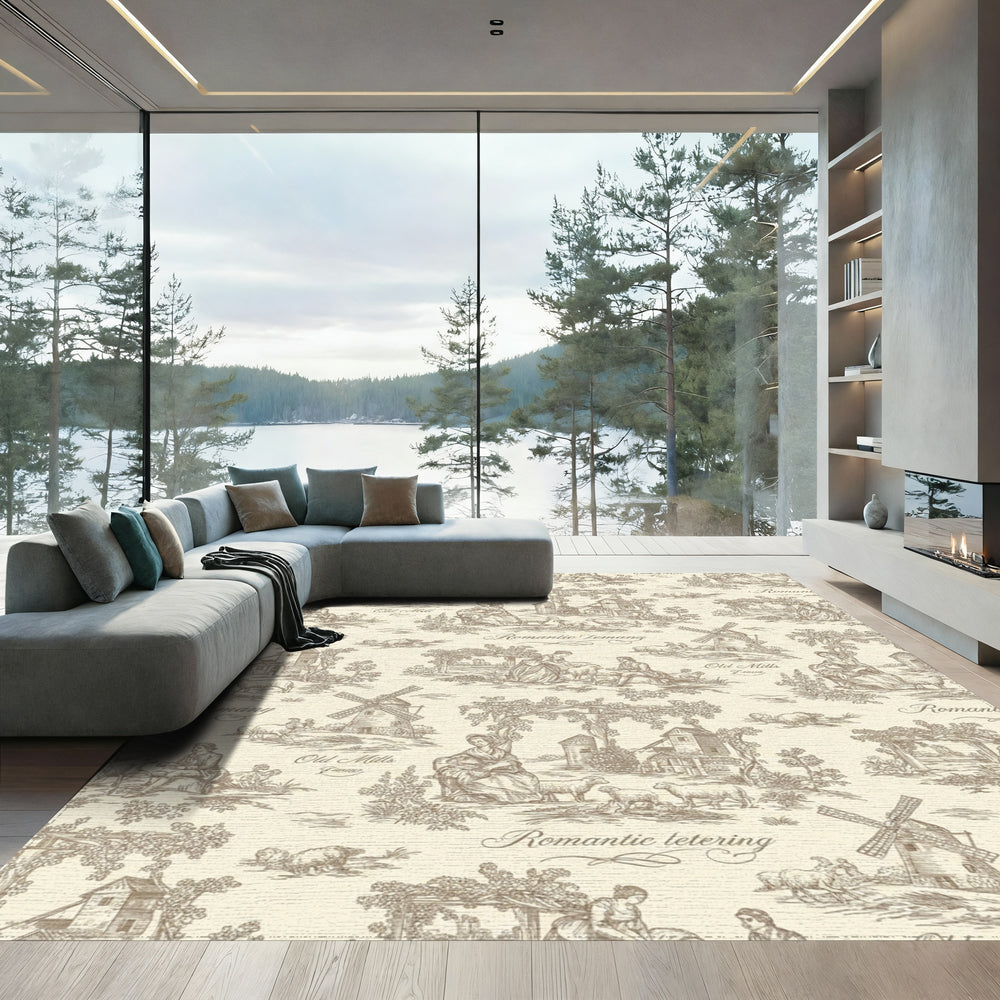 Pastoral Landscape Scenes Beige Grey Rug