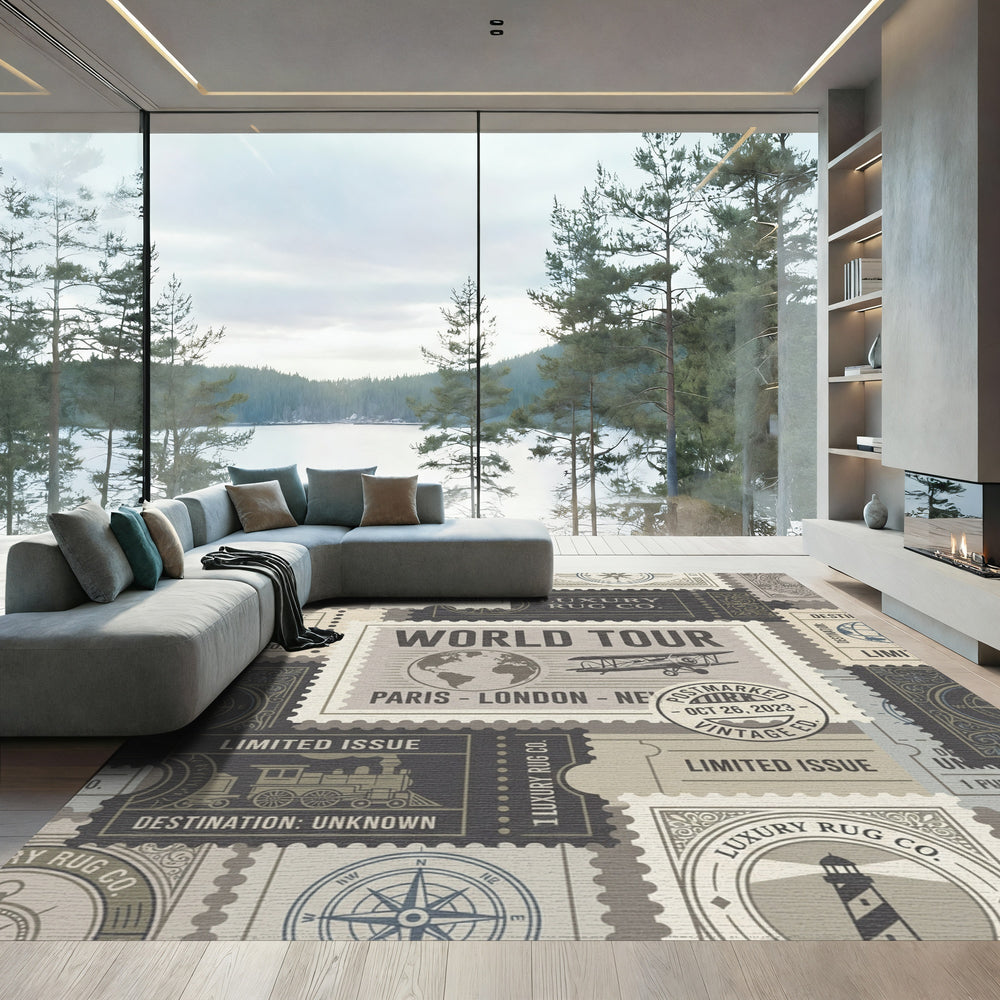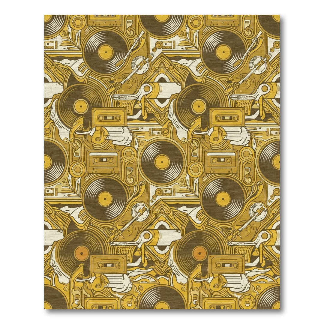 Retro Music Cassette Vinyl Headphone Collage Rug