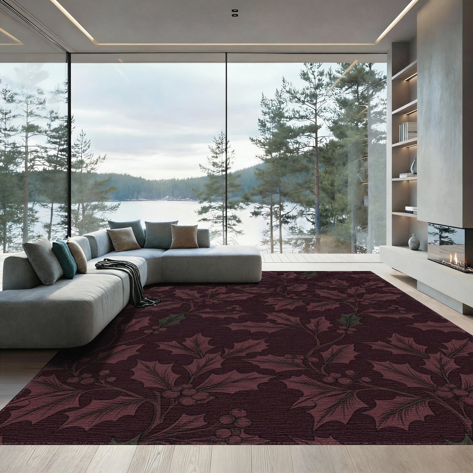 Flatwoven High Traffic Area Rug, Deep Red Holly Berry Garland Rug, Non Slip, Stain Resistant, Washable Area Rugs for Living Room, Bedroom Overview: