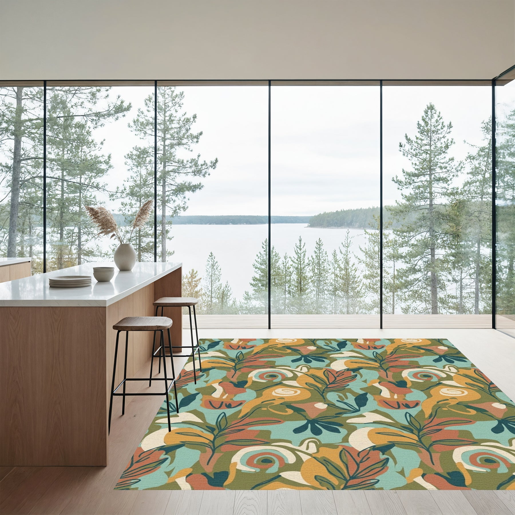 Abstract Earthy Tone Floral Swirl Rug