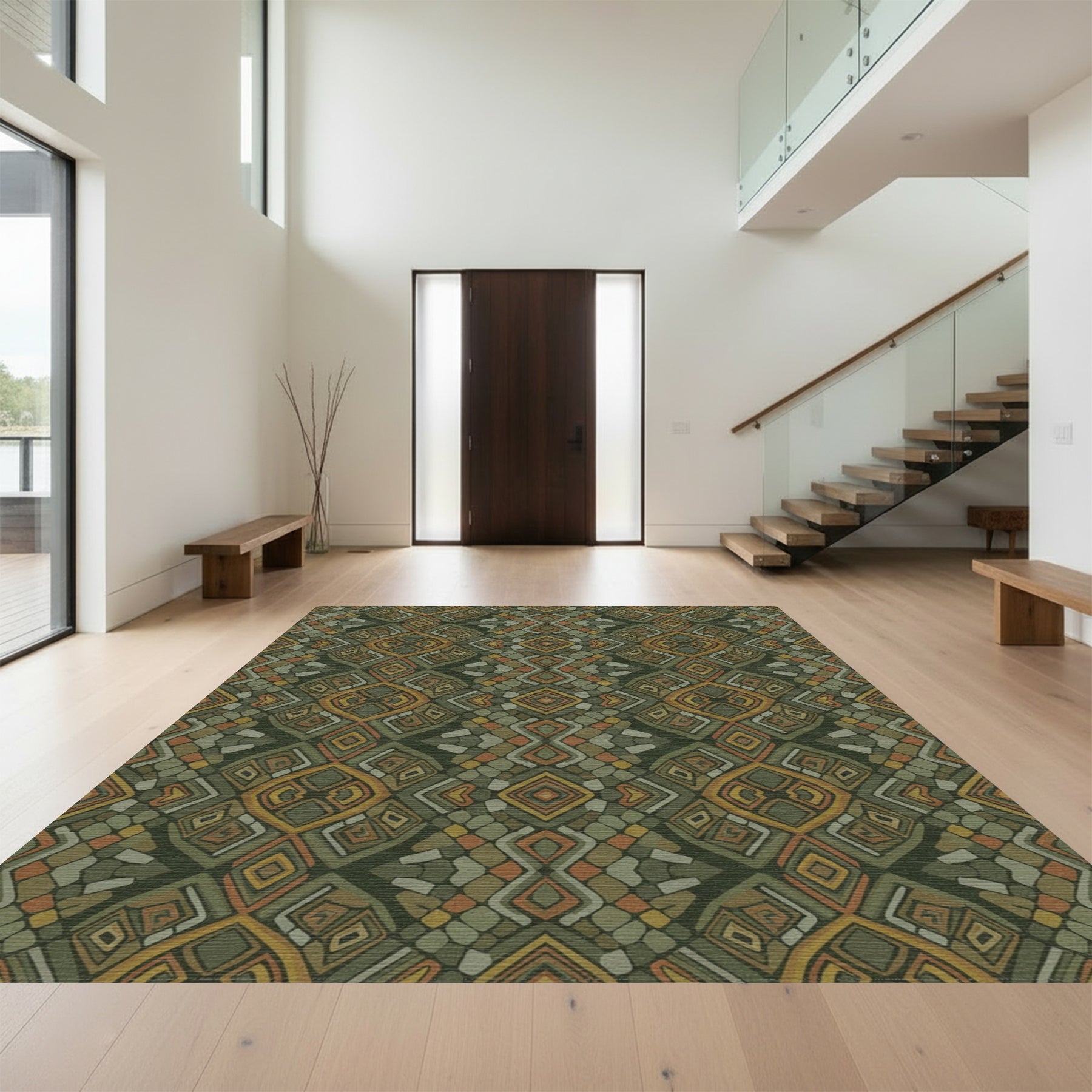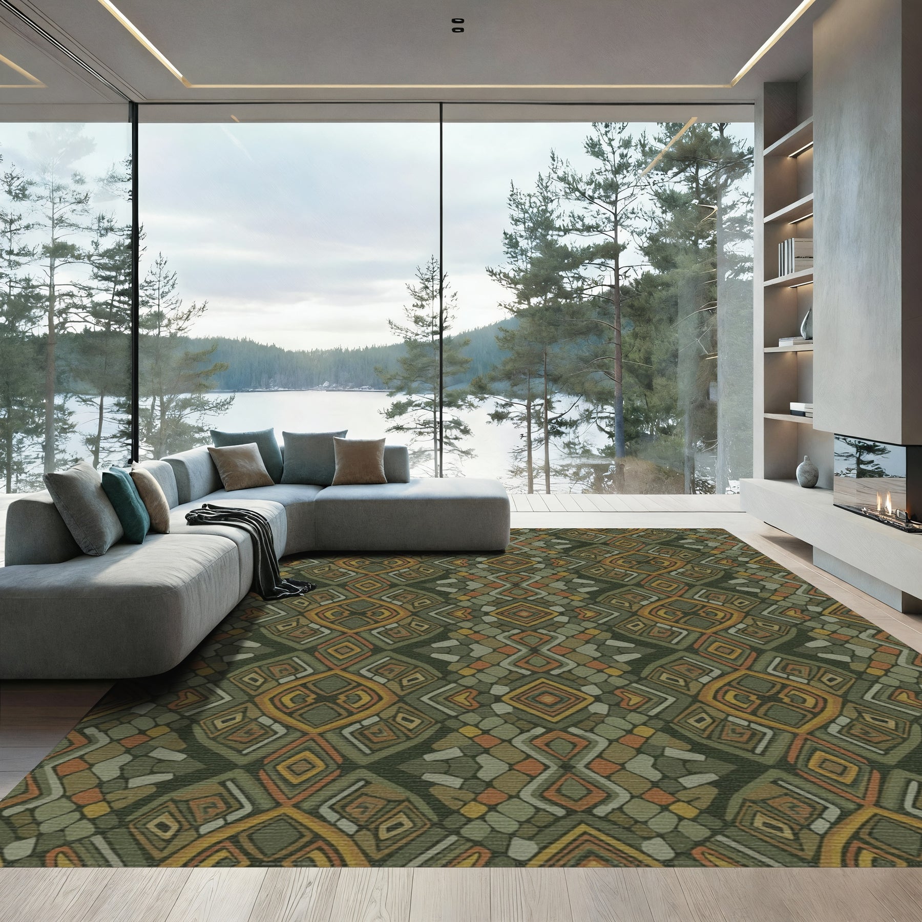 Flatwoven High Traffic Area Rug, Earthy Abstract Tribal Diamond Rug, Non Slip, Stain Resistant, Washable Area Rugs for Living Room, Bedroom Overview: