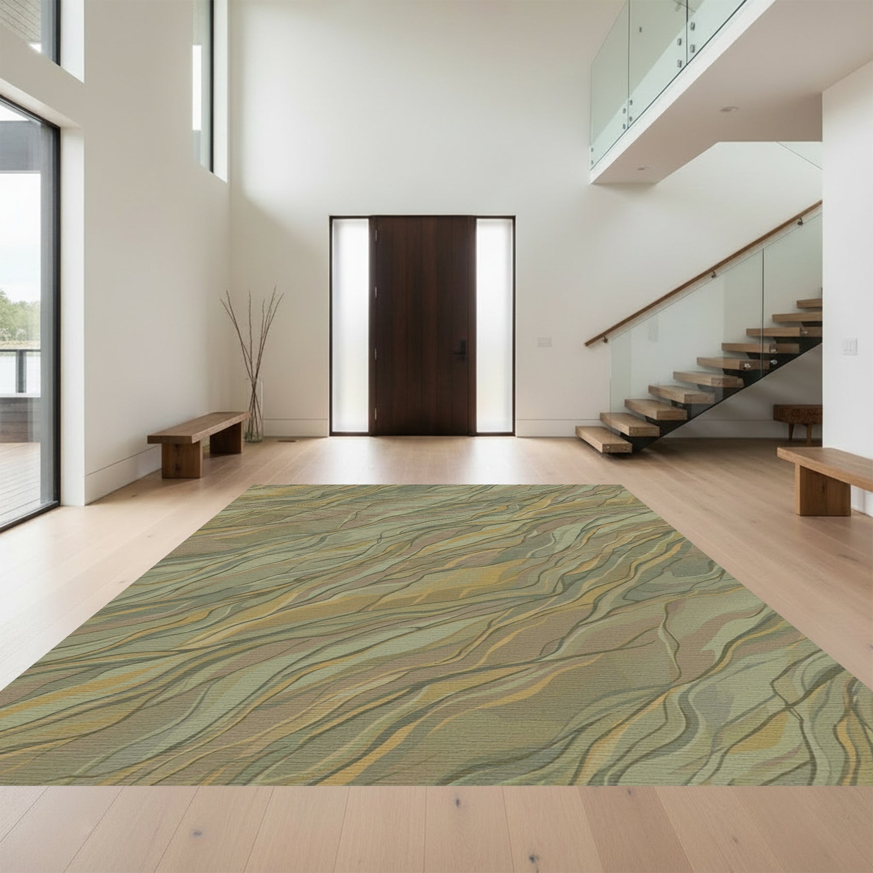 Flatwoven High Traffic Area Rug, Earthy Tone Woven Wood Grain Rug, Non Slip, Stain Resistant, Washable Area Rugs for Living Room, Bedroom Overview: