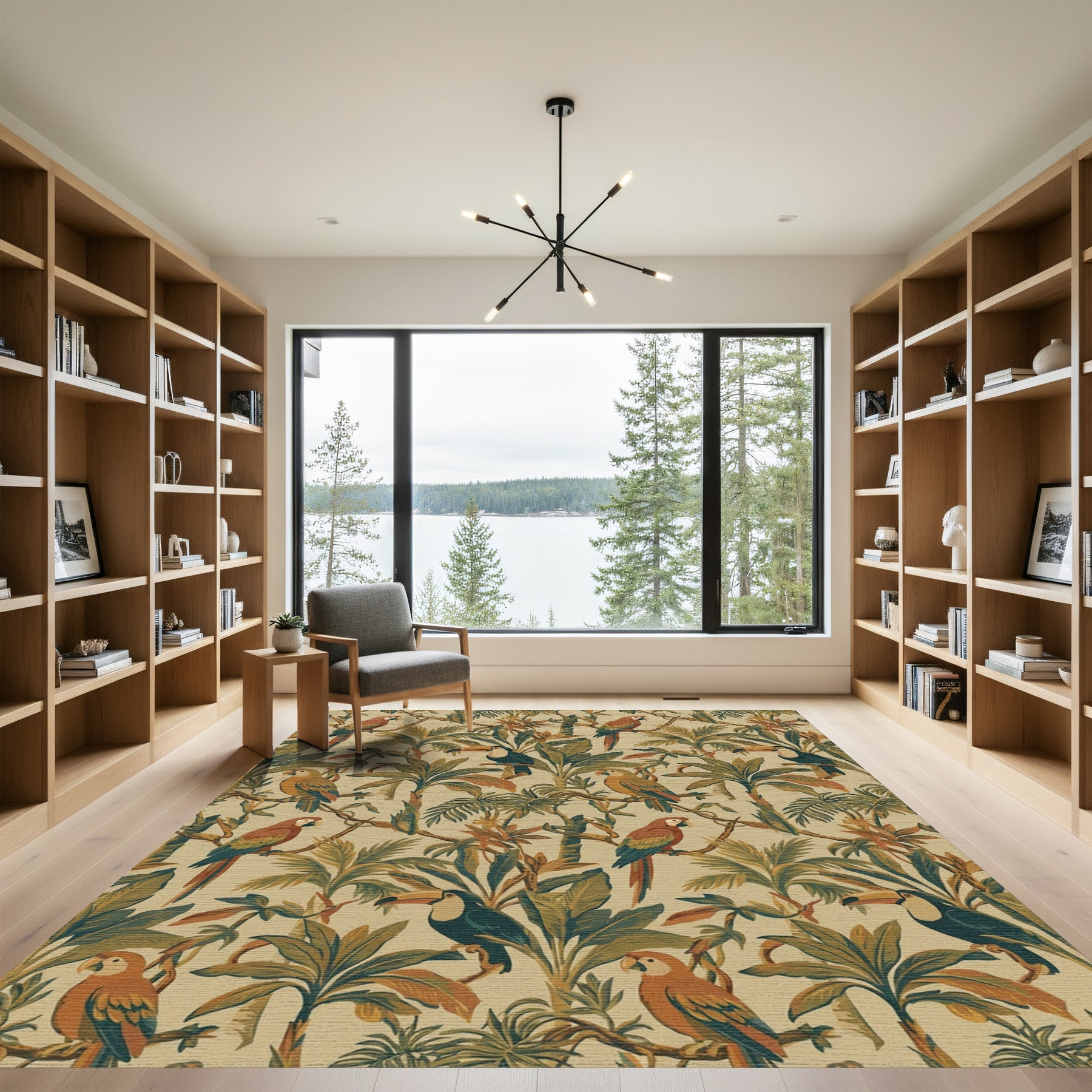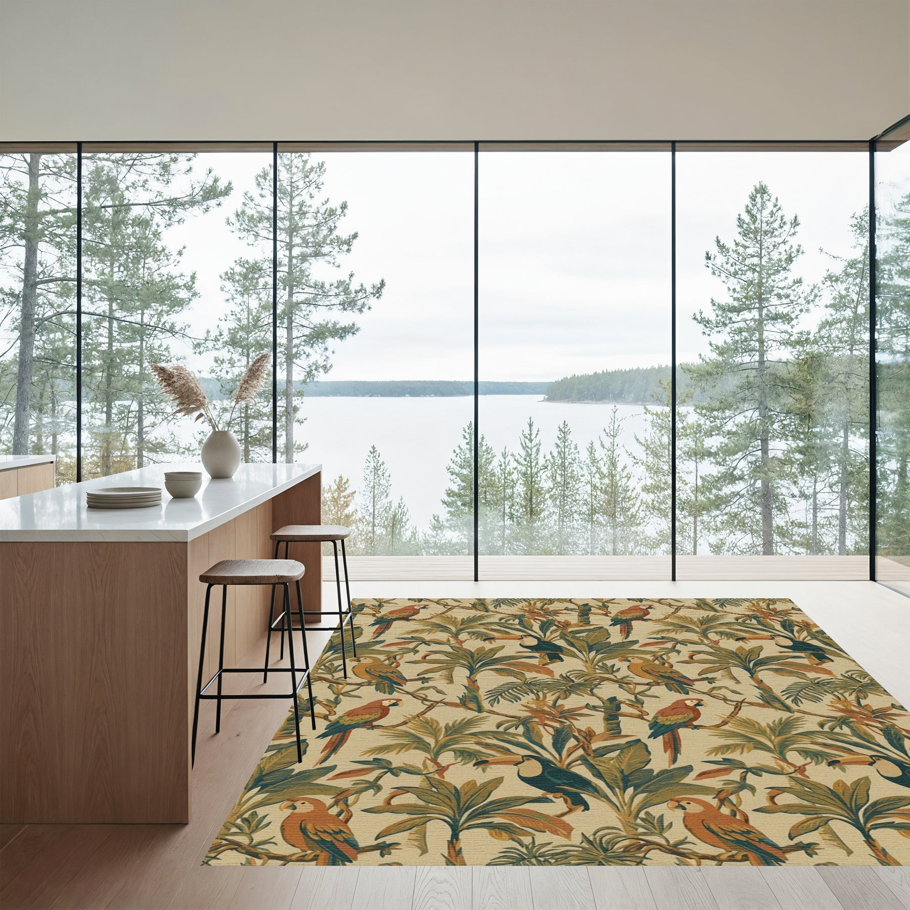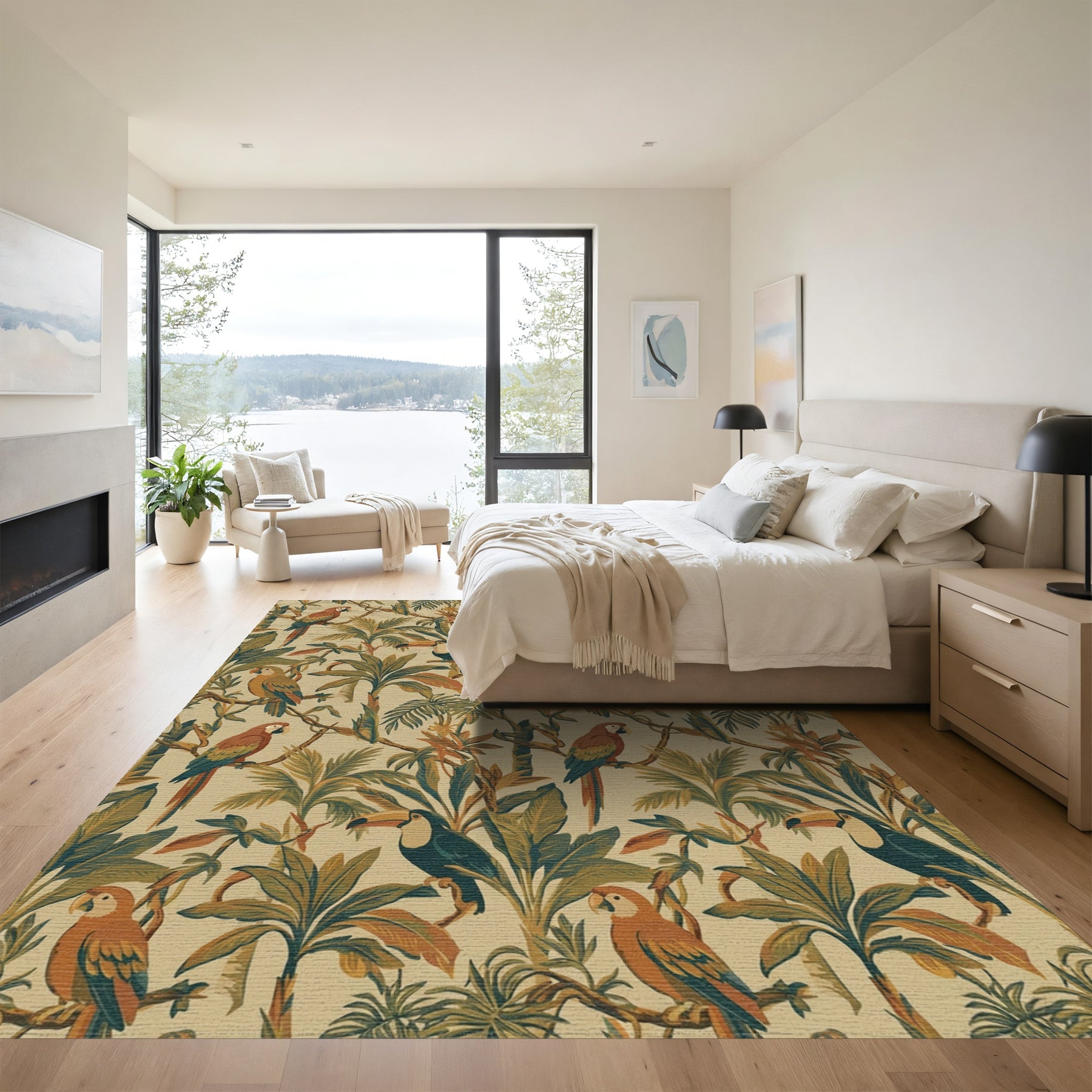 Flatwoven High Traffic Area Rug, Tropical Jungle Birds Lush Greenery Rug, Non Slip, Stain Resistant, Washable Area Rugs for Living Room, Bedroom Overview: