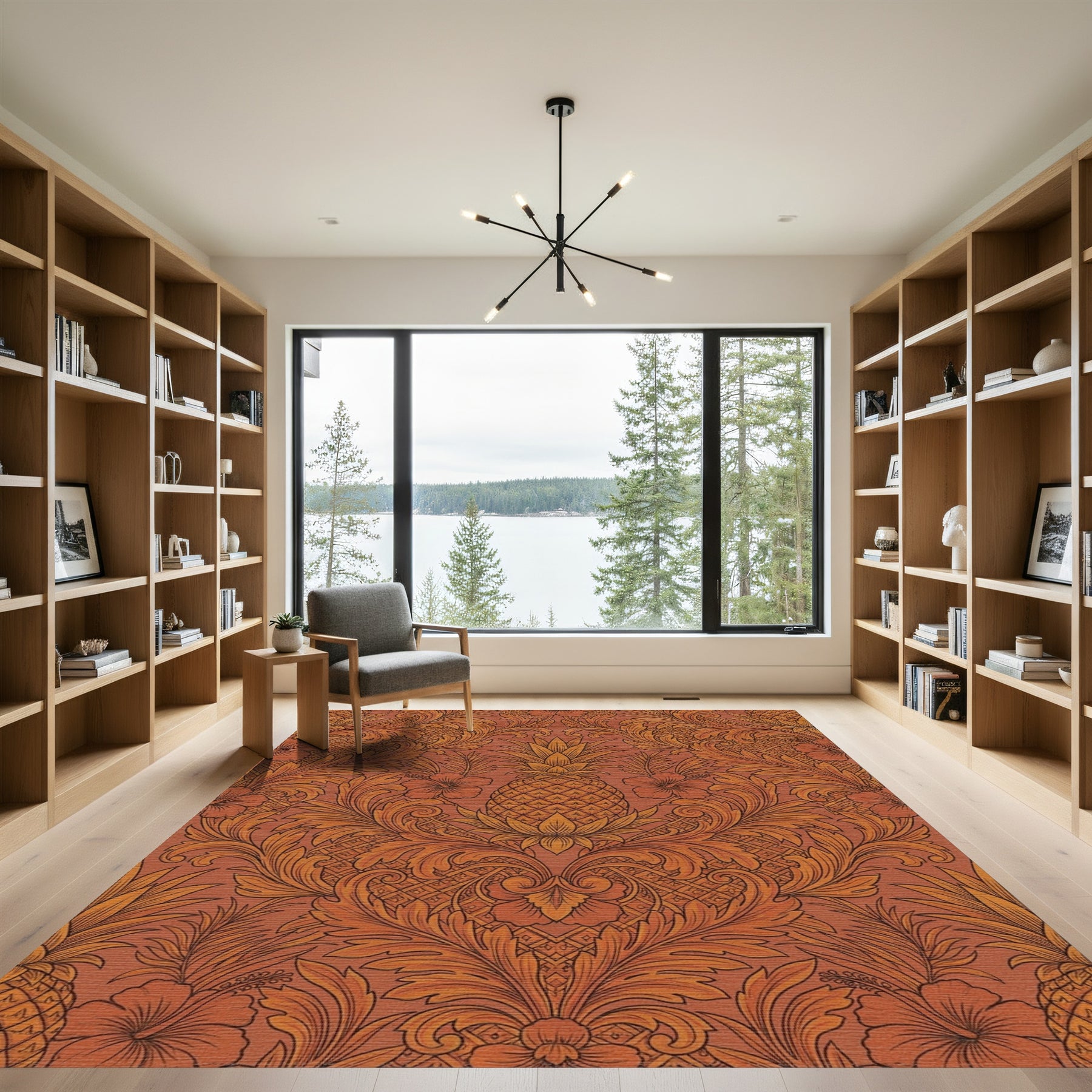 Flatwoven High Traffic Area Rug, Ornate Amber Pineapple Floral Damask Rug, Non Slip, Stain Resistant, Washable Area Rugs for Living Room, Bedroom Overview: