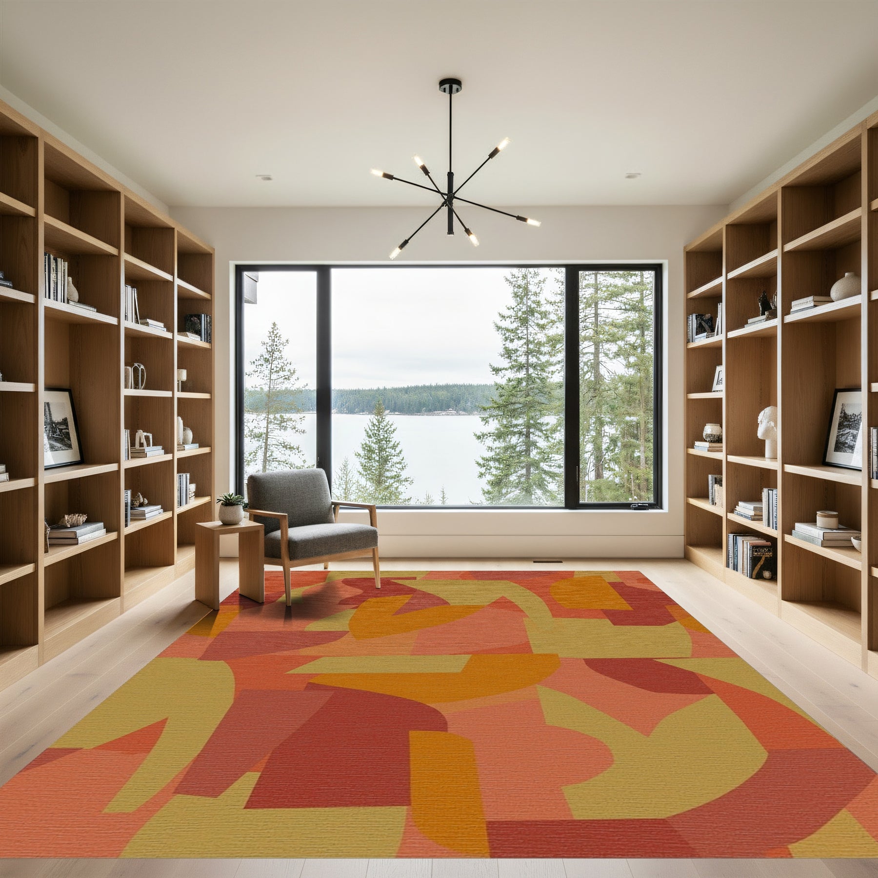 Flatwoven High Traffic Area Rug, Warm Terracotta Abstract Collage Rug, Non Slip, Stain Resistant, Washable Area Rugs for Living Room, Bedroom Overview: