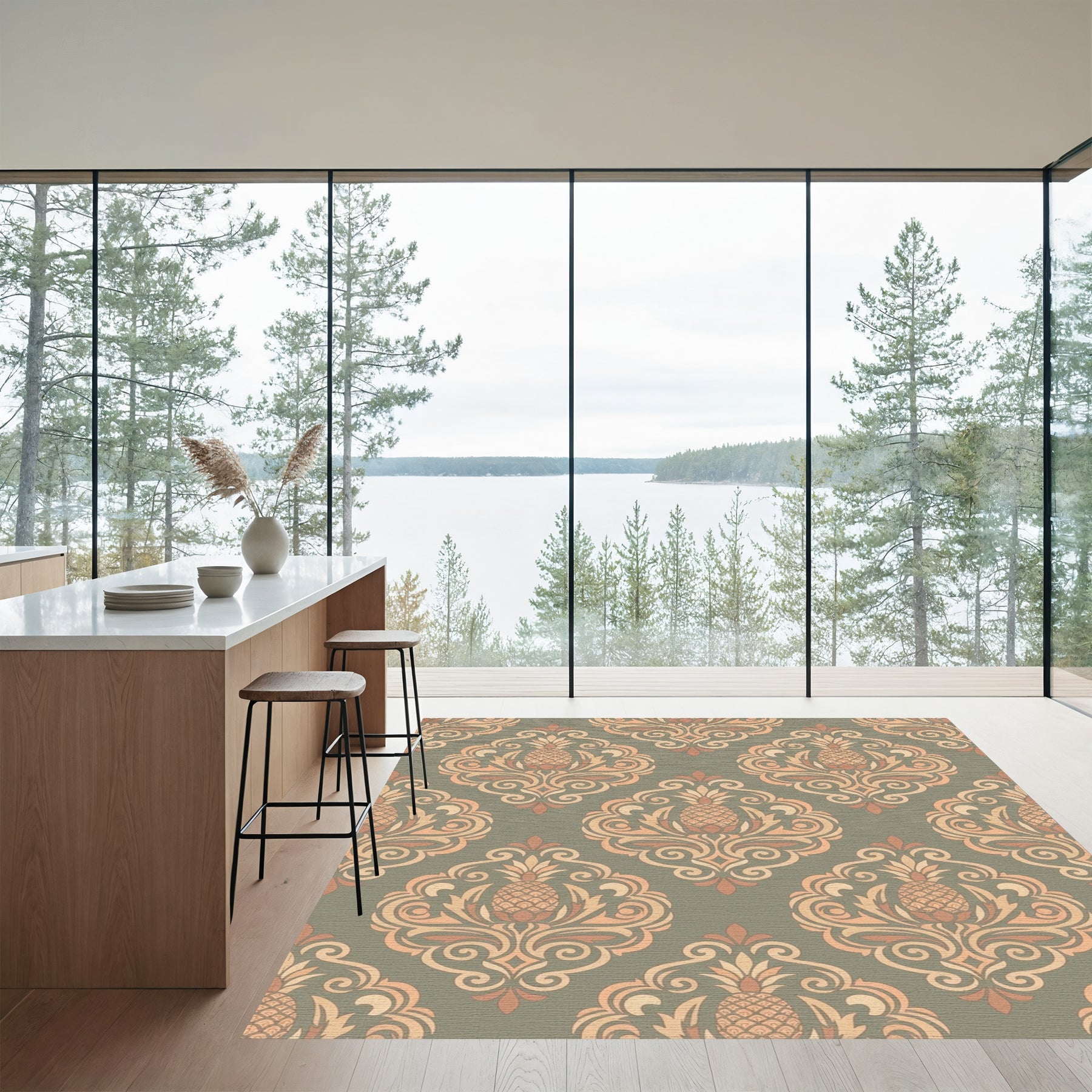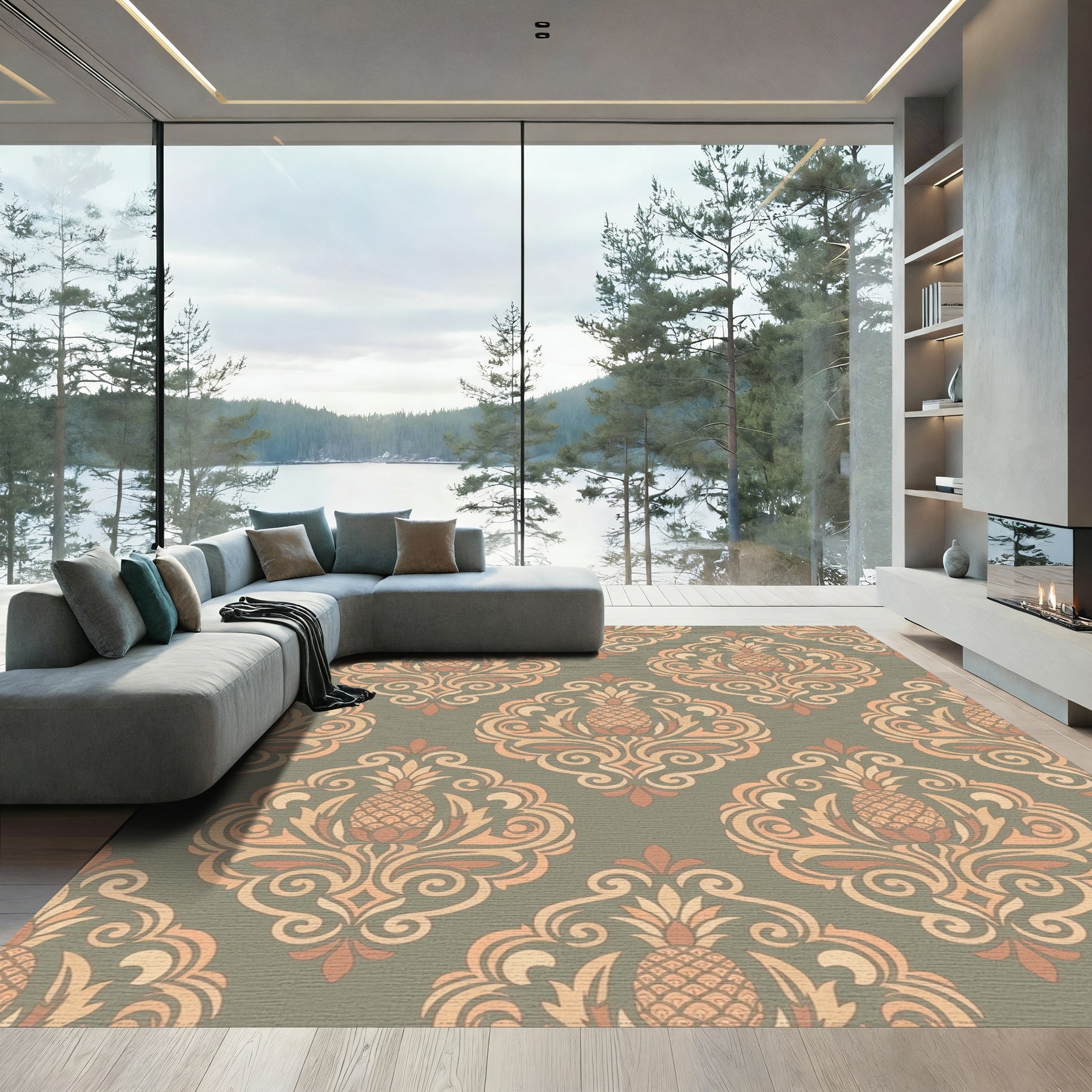 Flatwoven High Traffic Area Rug, Antique Peach Pineapple Damask Rug, Non Slip, Stain Resistant, Washable Area Rugs for Living Room, Bedroom Overview: