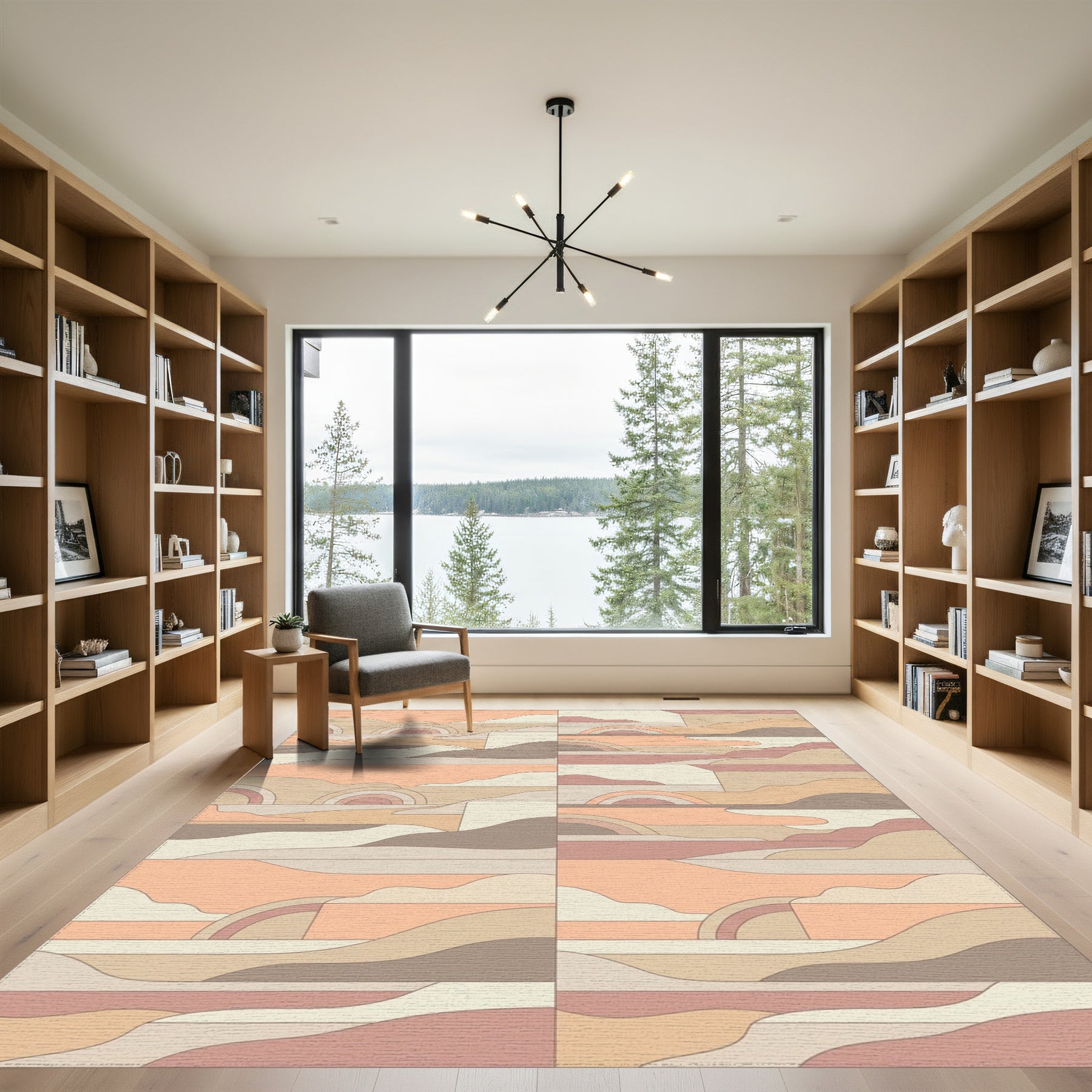 Flatwoven High Traffic Area Rug, Calming Peach Landscape Arc Rug, Non Slip, Stain Resistant, Washable Area Rugs for Living Room, Bedroom Overview: