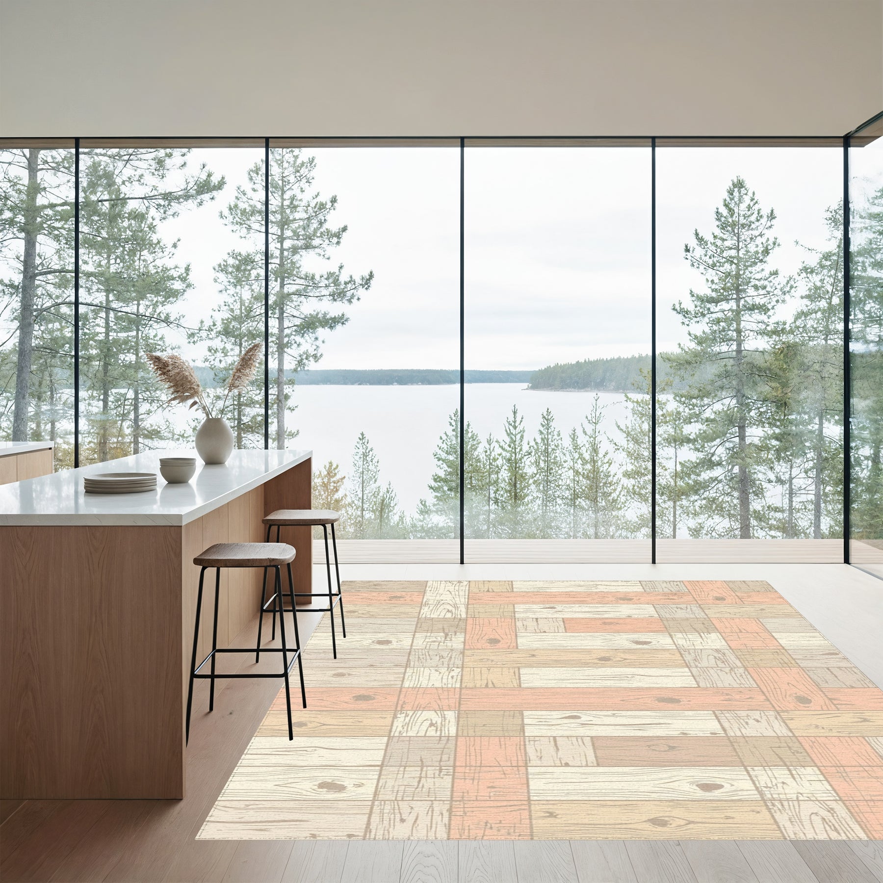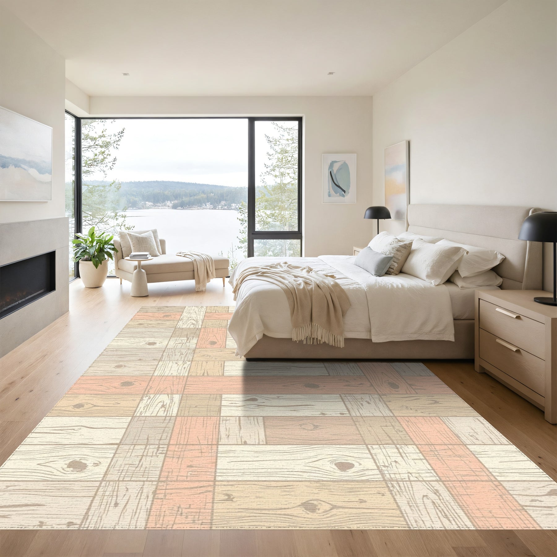 Flatwoven High Traffic Area Rug, Pastel Wood Plank Parquet Rug, Non Slip, Stain Resistant, Washable Area Rugs for Living Room, Bedroom Overview: