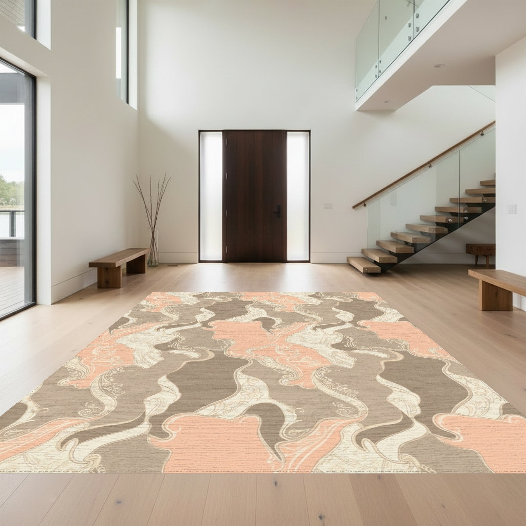 Flatwoven High Traffic Area Rug, Peach Tan Abstract Organic Swirls Rug, Non Slip, Stain Resistant, Washable Area Rugs for Living Room, Bedroom Overview:
