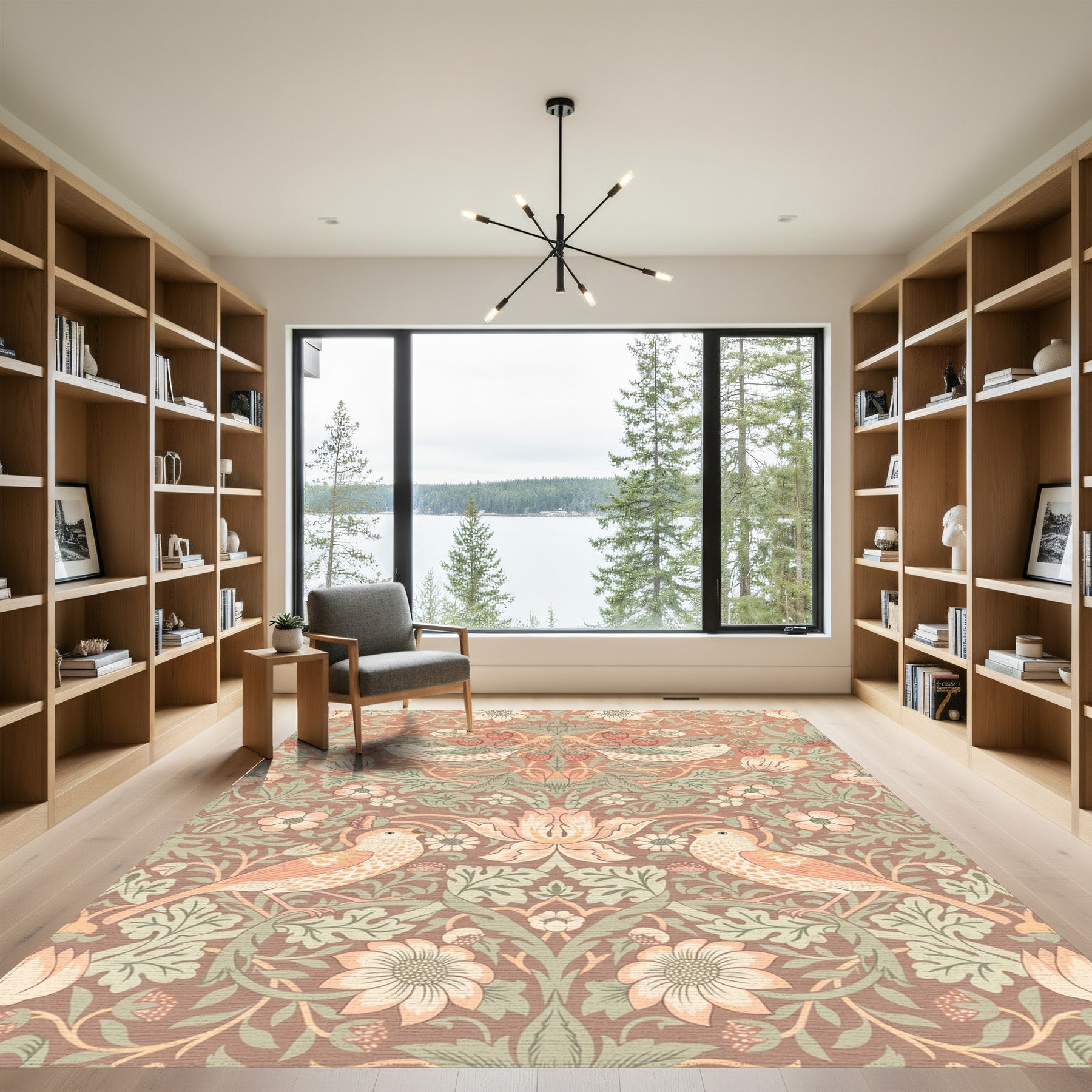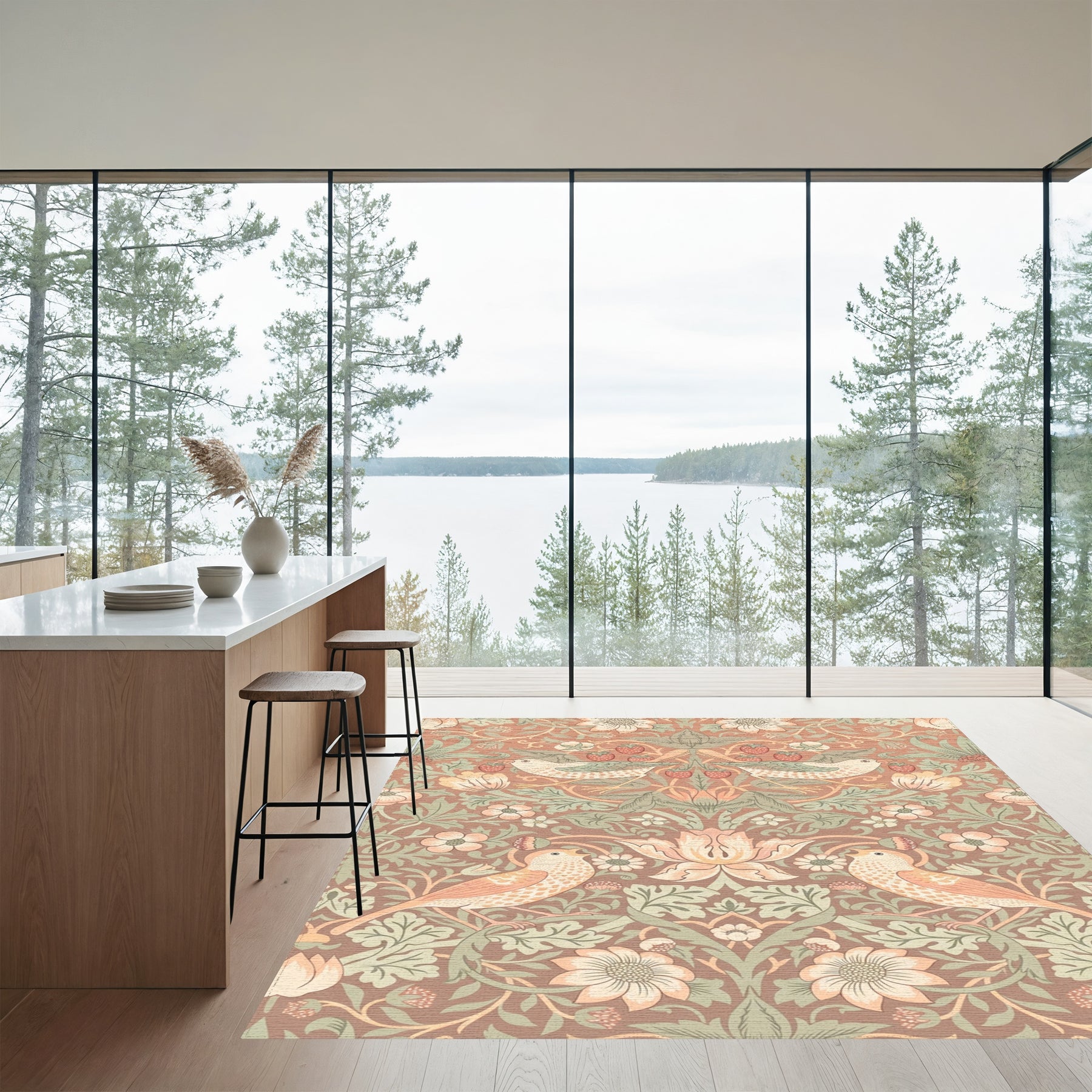 Flatwoven High Traffic Area Rug, Rustic Strawberry Bird Floral Tapestry Rug, Non Slip, Stain Resistant, Washable Area Rugs for Living Room, Bedroom Overview: