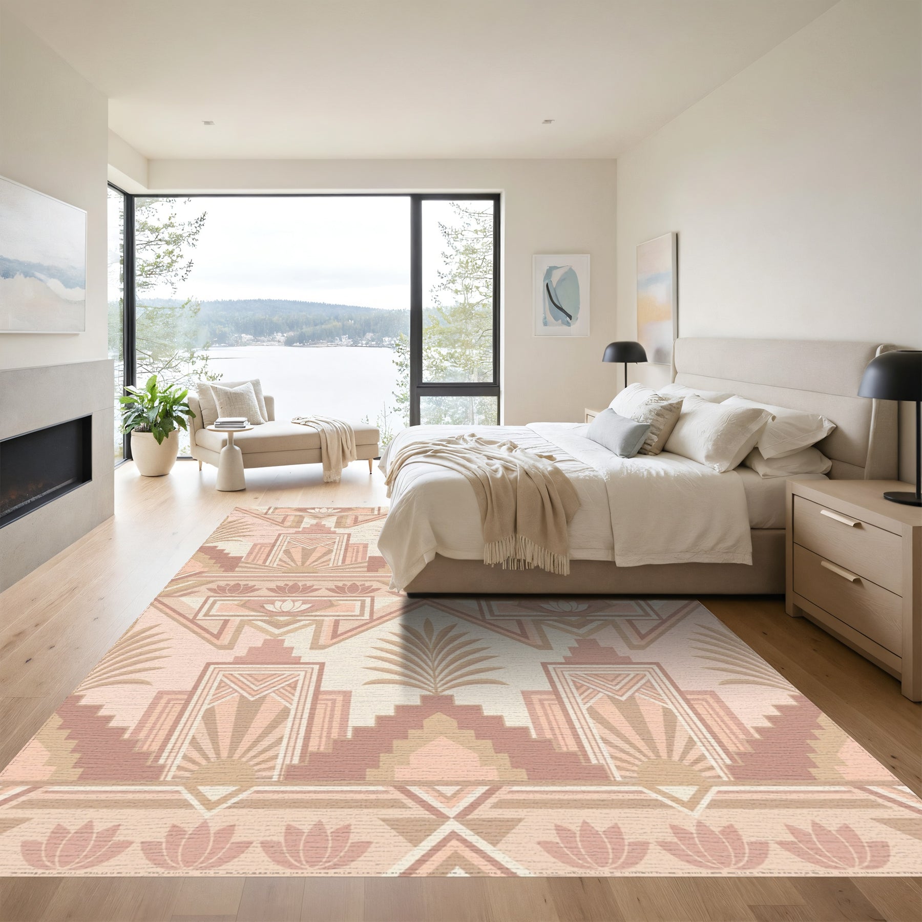 Flatwoven High Traffic Area Rug, Terracotta Art Deco Lotus Sunburst Rug, Non Slip, Stain Resistant, Washable Area Rugs for Living Room, Bedroom Overview:
