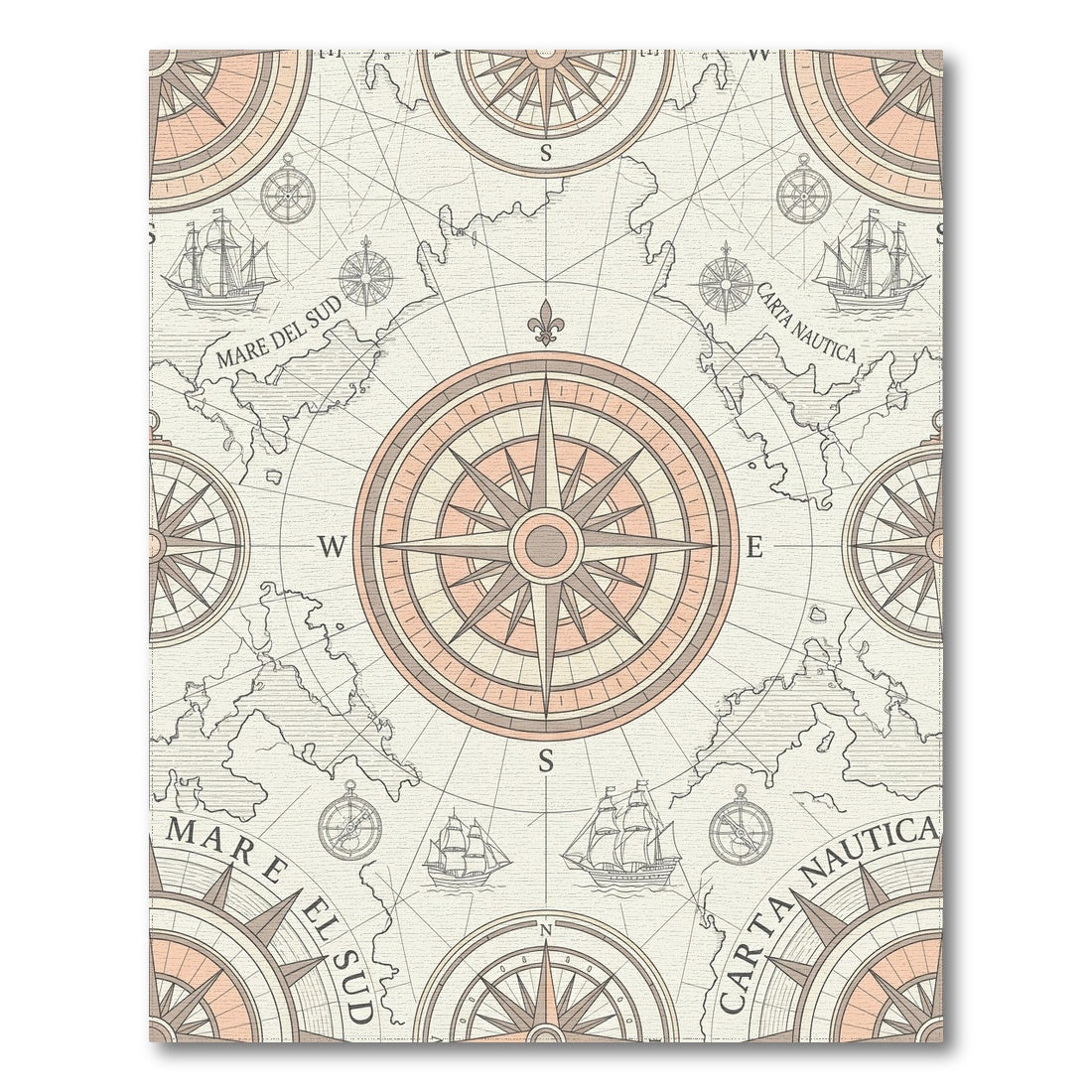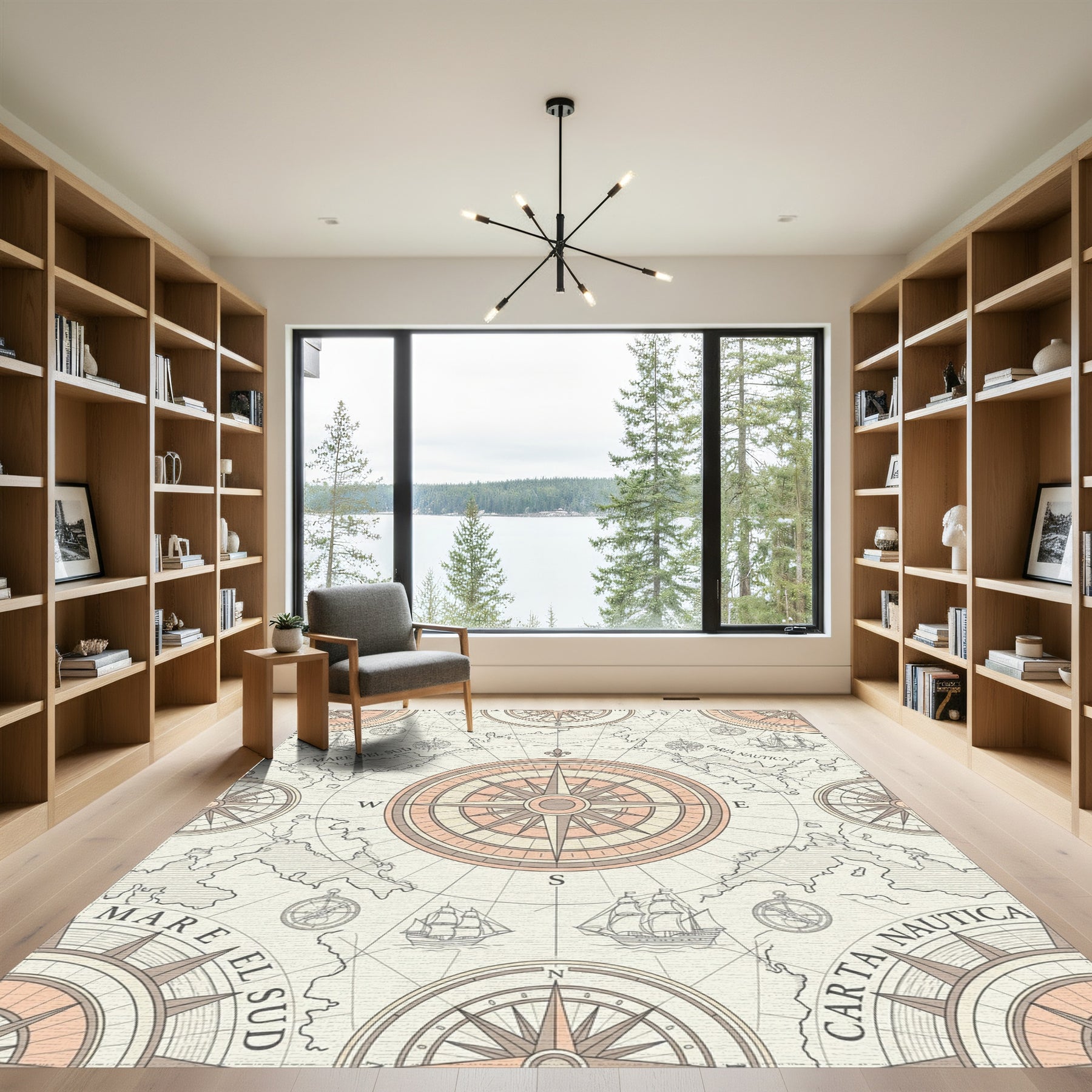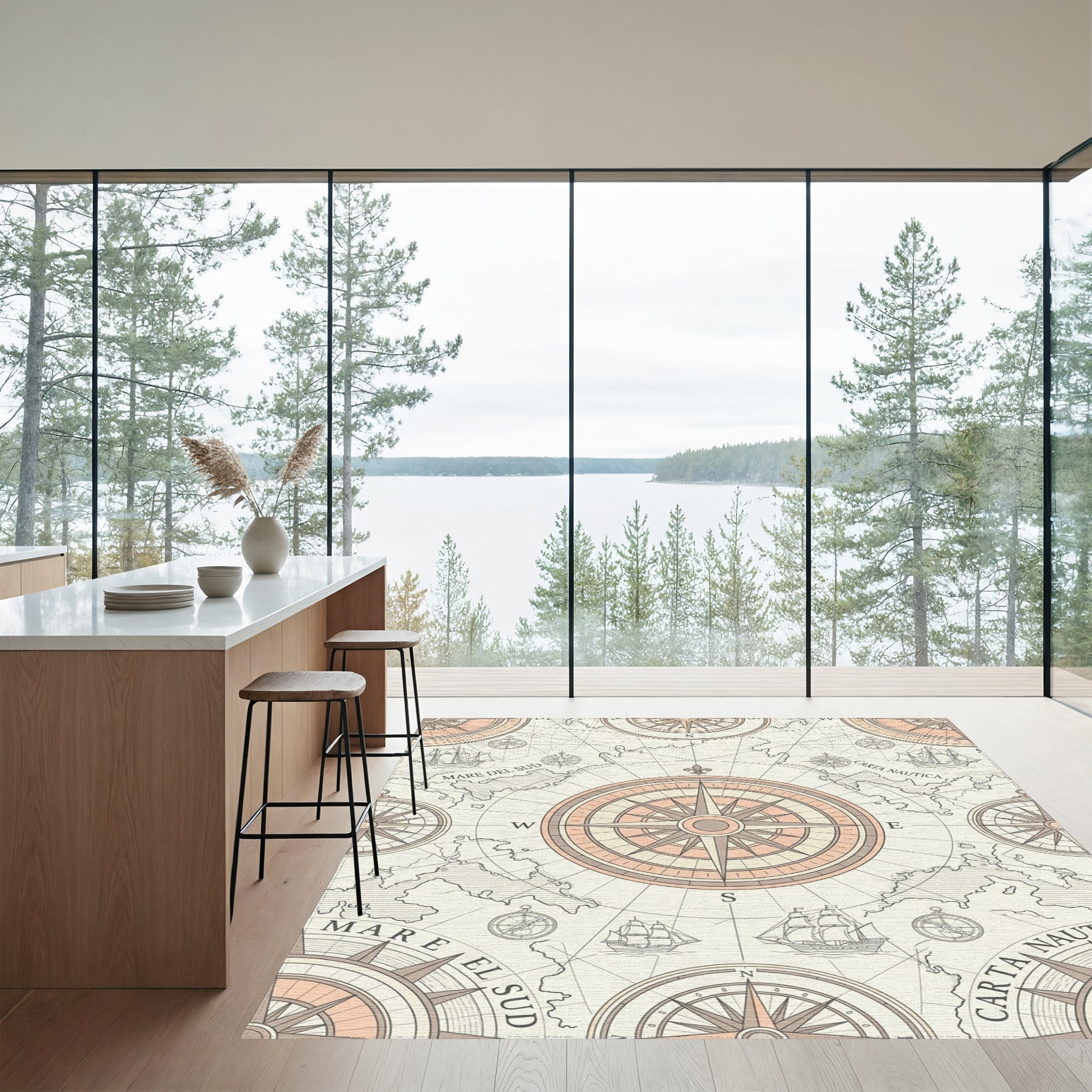 Flatwoven High Traffic Area Rug, Vintage Nautical Compass Sailing Map Rug, Non Slip, Stain Resistant, Washable Area Rugs for Living Room, Bedroom Overview: