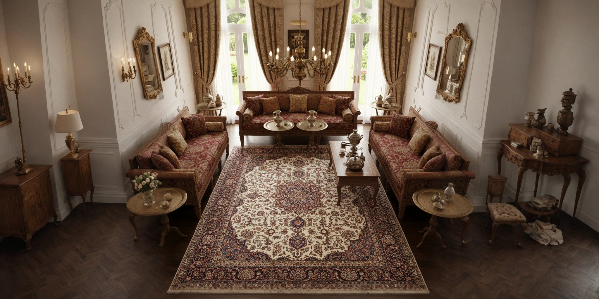 Golden Floral Medallion Scroll Work Rug