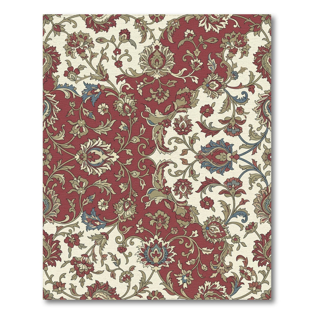 Victorian Red Floral Scroll Arrangement Rug