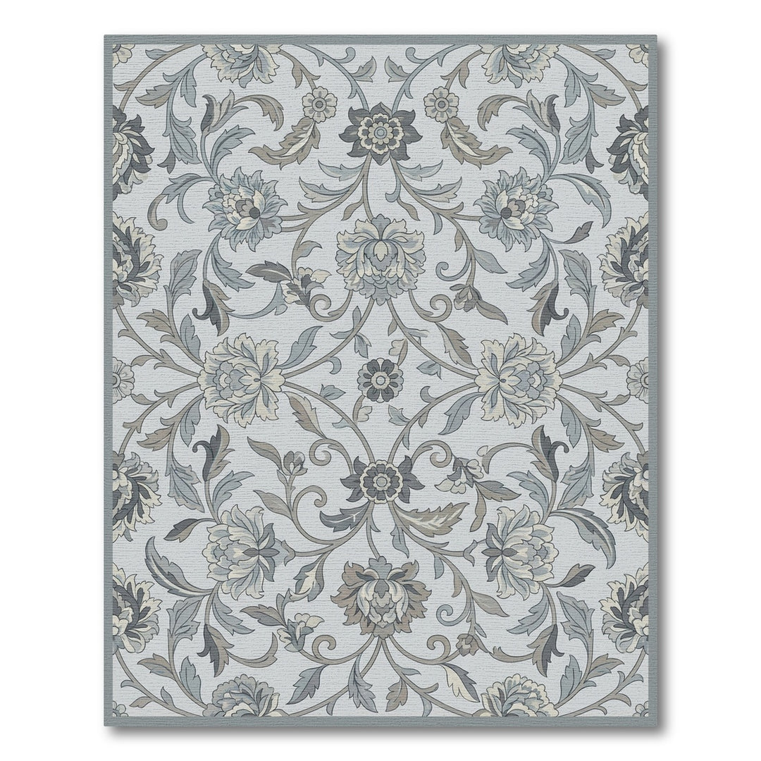 Gray Floral Swirl Damask Rug