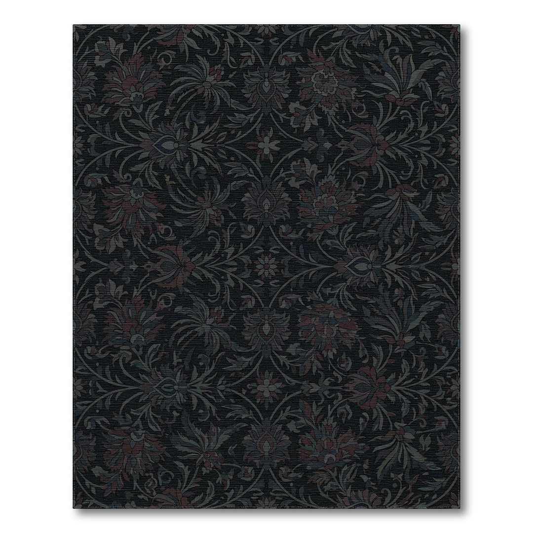 Dark Teal Floral Scrollwork Rug