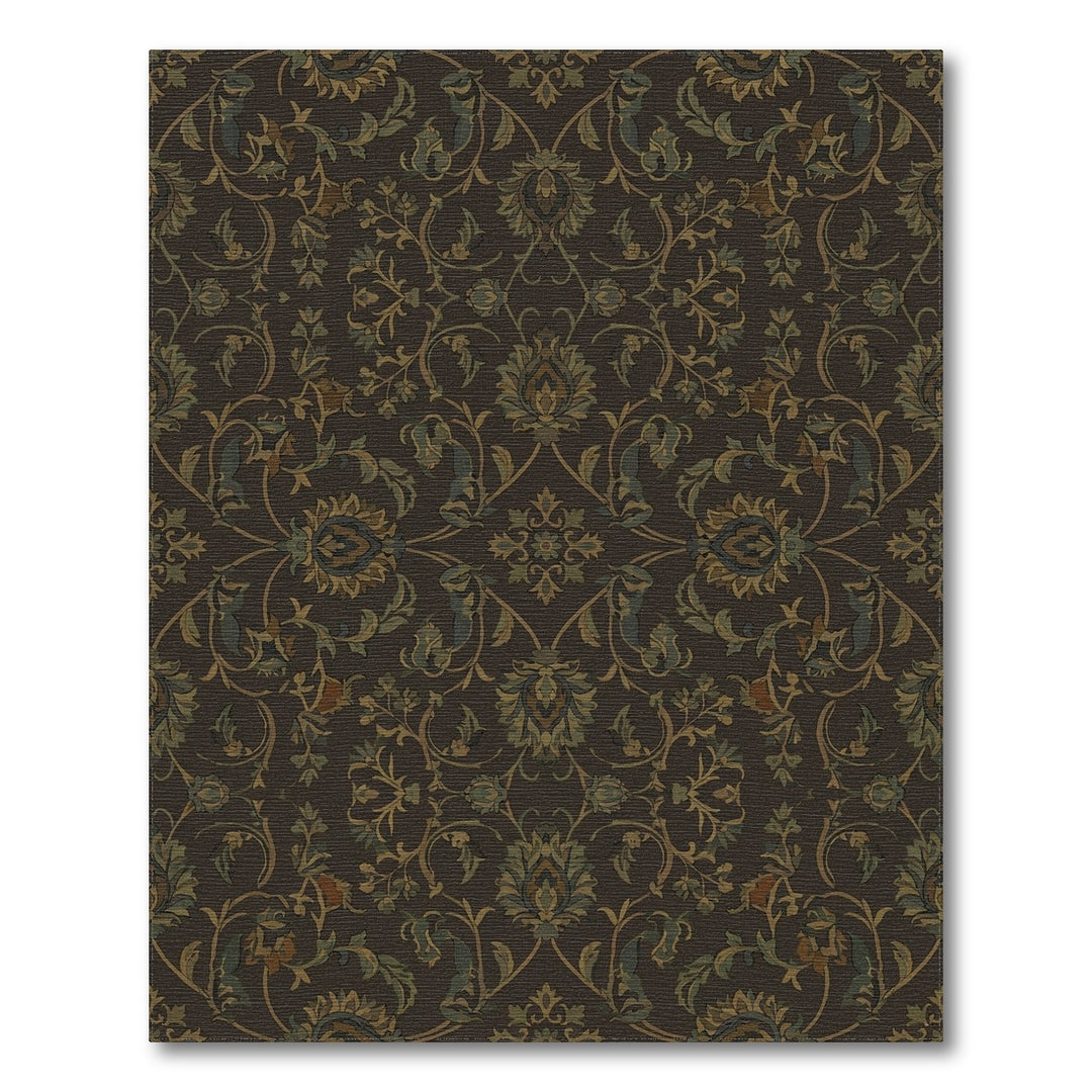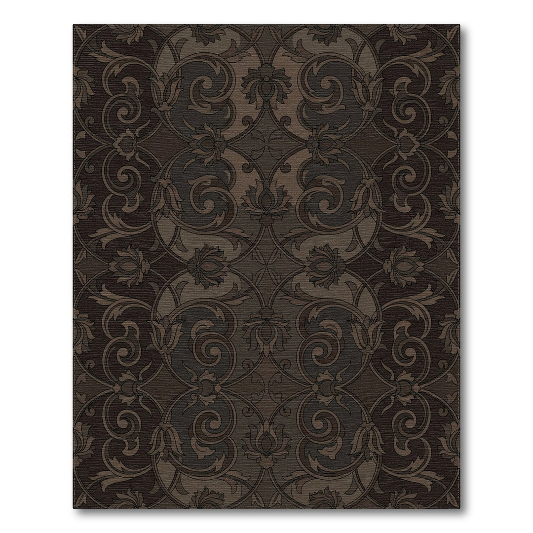 Dark Brown Arabesque Floral Scroll Rug