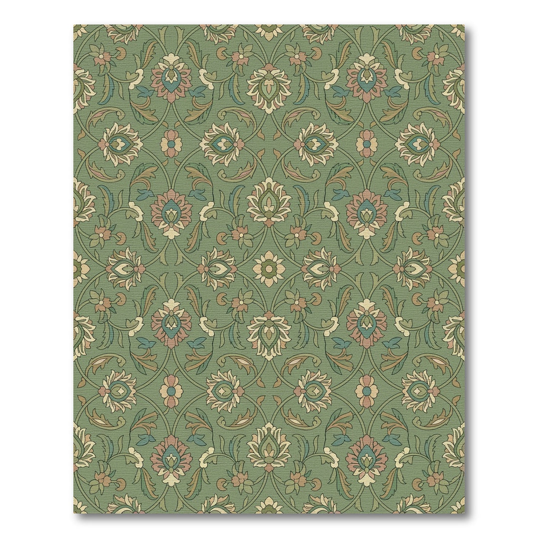 Sage Green Floral Arabesque Rug