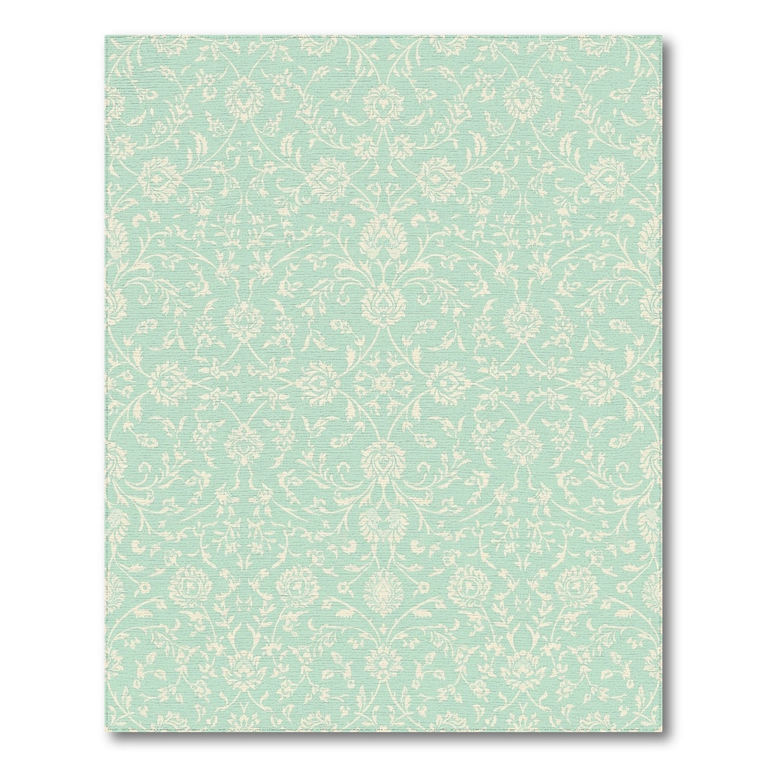 Vintage Mint White Floral Vines Rug